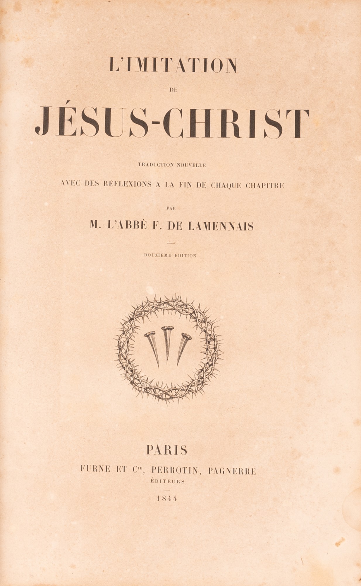 c) L'Imitation de Jèsus-Christ. par l'habbè F. De LammenaisParis. Furne et c. , Perrotin Editeurs, 1844.