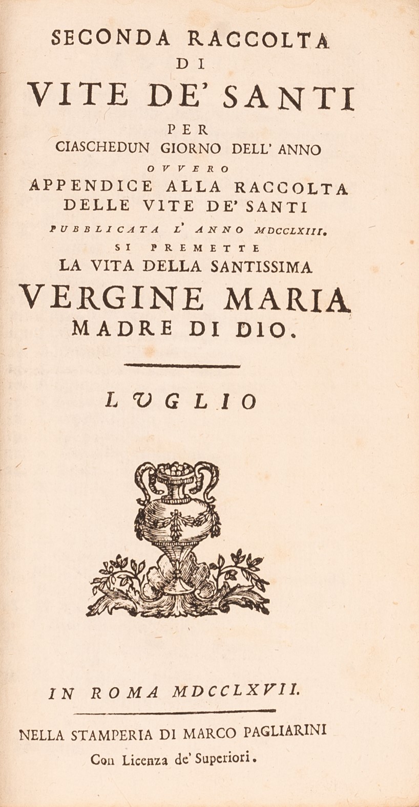 - Seconda raccolta di vita de' Santi per chiaschedun giorno dell'anno, ovvero appendice alla raccolta delle vite dei Santi