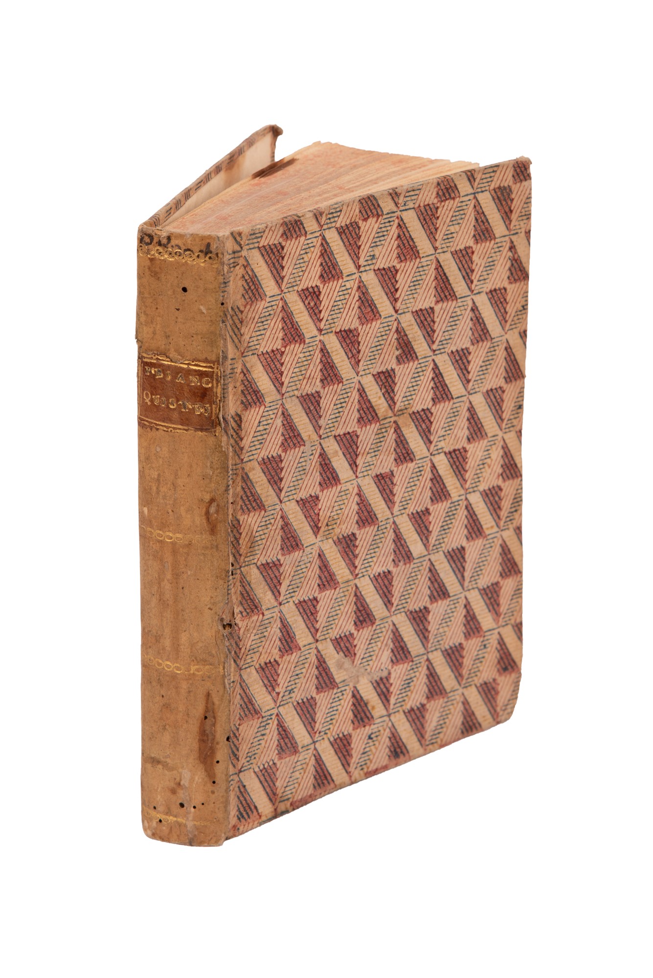 in mezza pelle con titolo in oro e piatti con motivi geometrici