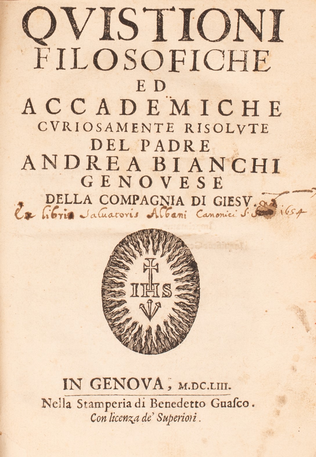 Quistioni filosofiche ed accademiche curiosamente risolute del Padre Andrea Bianchi genovese della Compagnia di Gesù