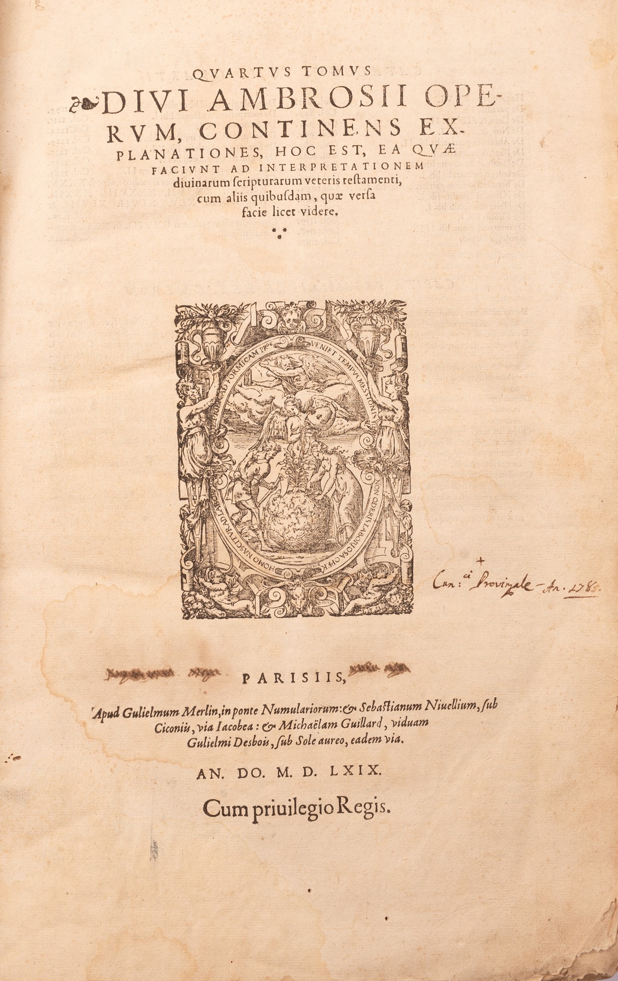 Parisiis, apud Guglielmum Merlin AN. DO. MDLXIX 1569