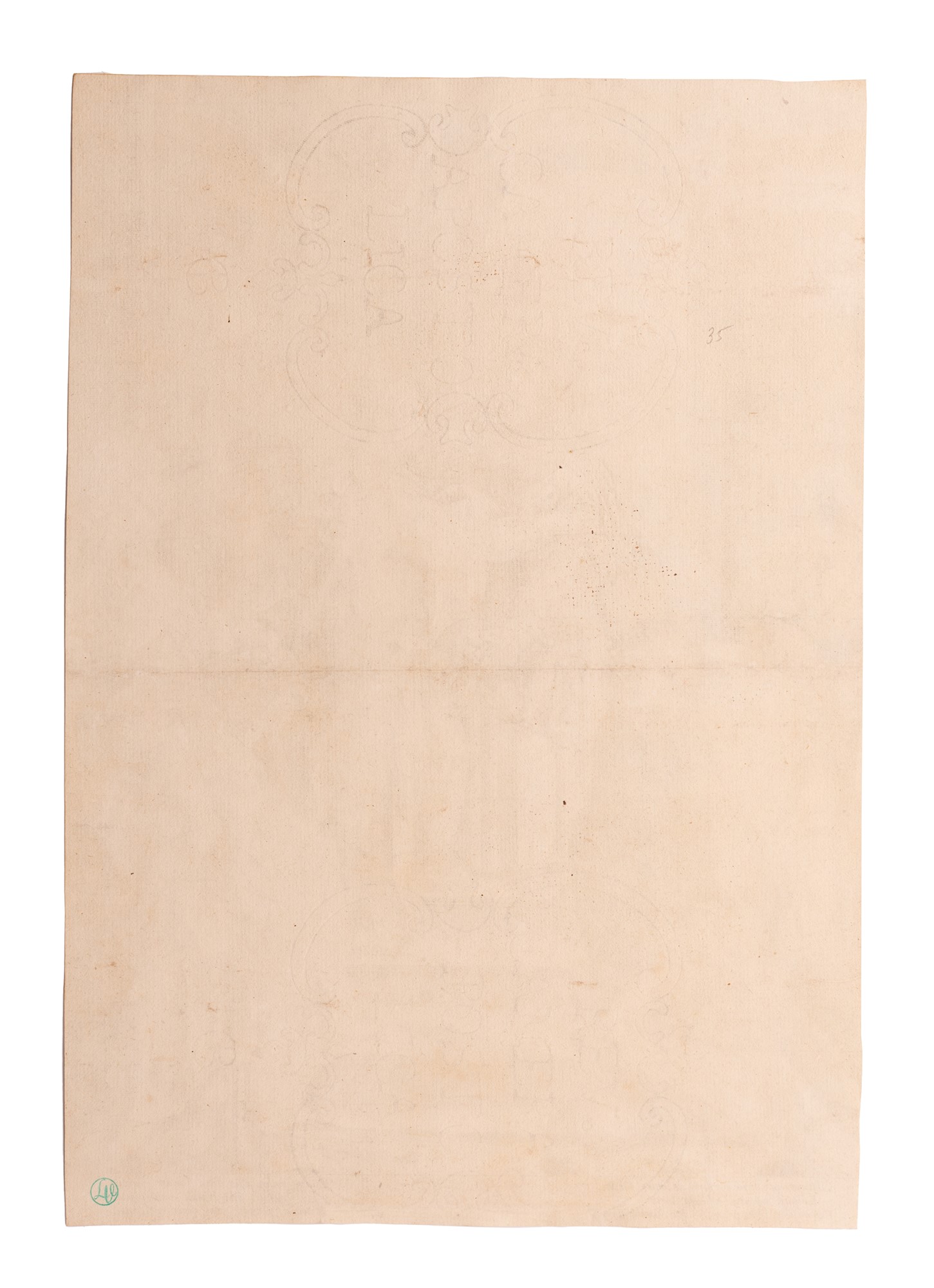 Condizioni: Bellissima prova su carta spessa vergellata con filigrana rifilata al margine, timbro da collezione non in Lugt al verso. mm 287x412