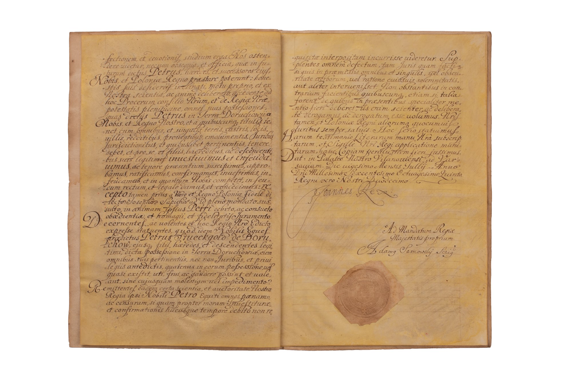 Investitura e infeudamento di tutti ipossedimenti che Pietro Stuechkgold De Doruchow e i suoi figli eredi ediscendenti detengono nella terra di Doruchow nel Regno di Polonia…