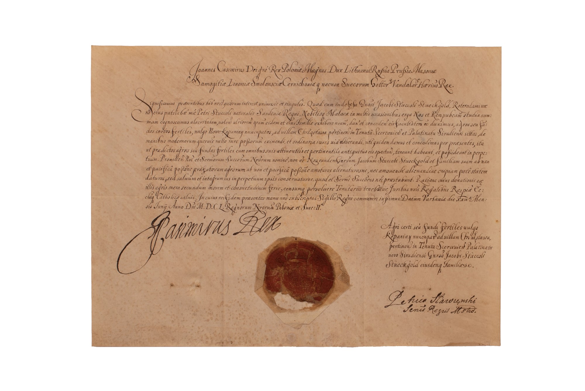 Donazione e concessione a JacoboStuccoli Stueckgold cittadino di Rotterdam nativo del Regno di Sardegna enobile di Malaga di certe terre e campi fertili denominati Nowe Kopaniny nellatenuta Scercowiense del Palatinato Siriadese…