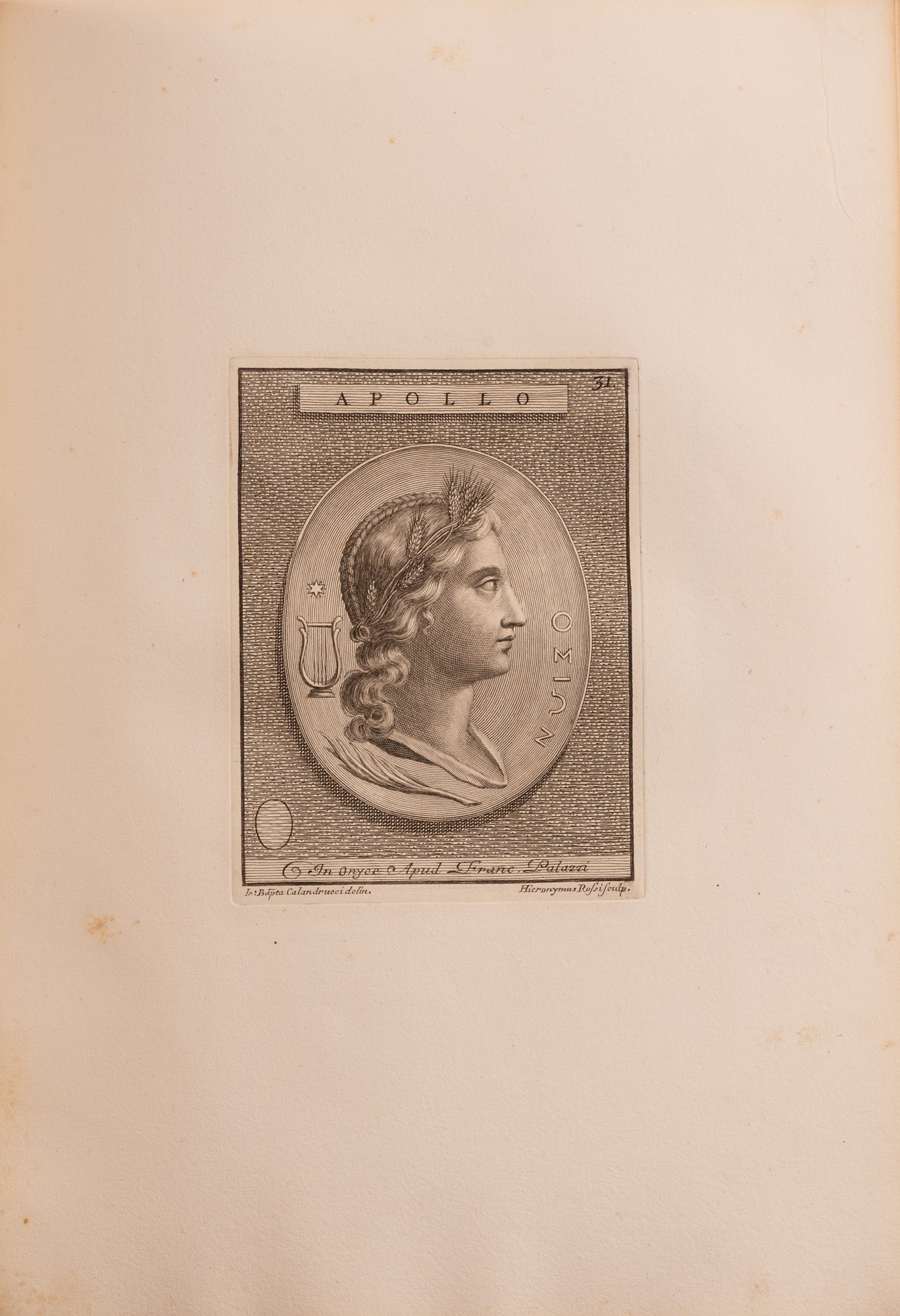 DESCRIZIONE: Folio grande (cm 29,5 x 42,6) – pag. XII – 80 – (2) – con frontespizio inciso e 104 tavole incise fuori testo (numerazione da 1 a 103: la n° 95 doppia). Solida ed elegante legatura coeva in piena pelle – cornici dorate ai piatti – fregi e titolo oro su tassello al dorso (6 nervi) – tagli gialli. Asportato e reintegrato il margine inferiore bianco del frontespizio - le tavole 64 e 65 erroneamente rilegate dopo la tavola 60. Bell’esemplare ottimamente legato. Cicognara 3631: “Bellissima opera”. 10 esemplari in ICCU. Rintracciate vendite a prezzo altissimo