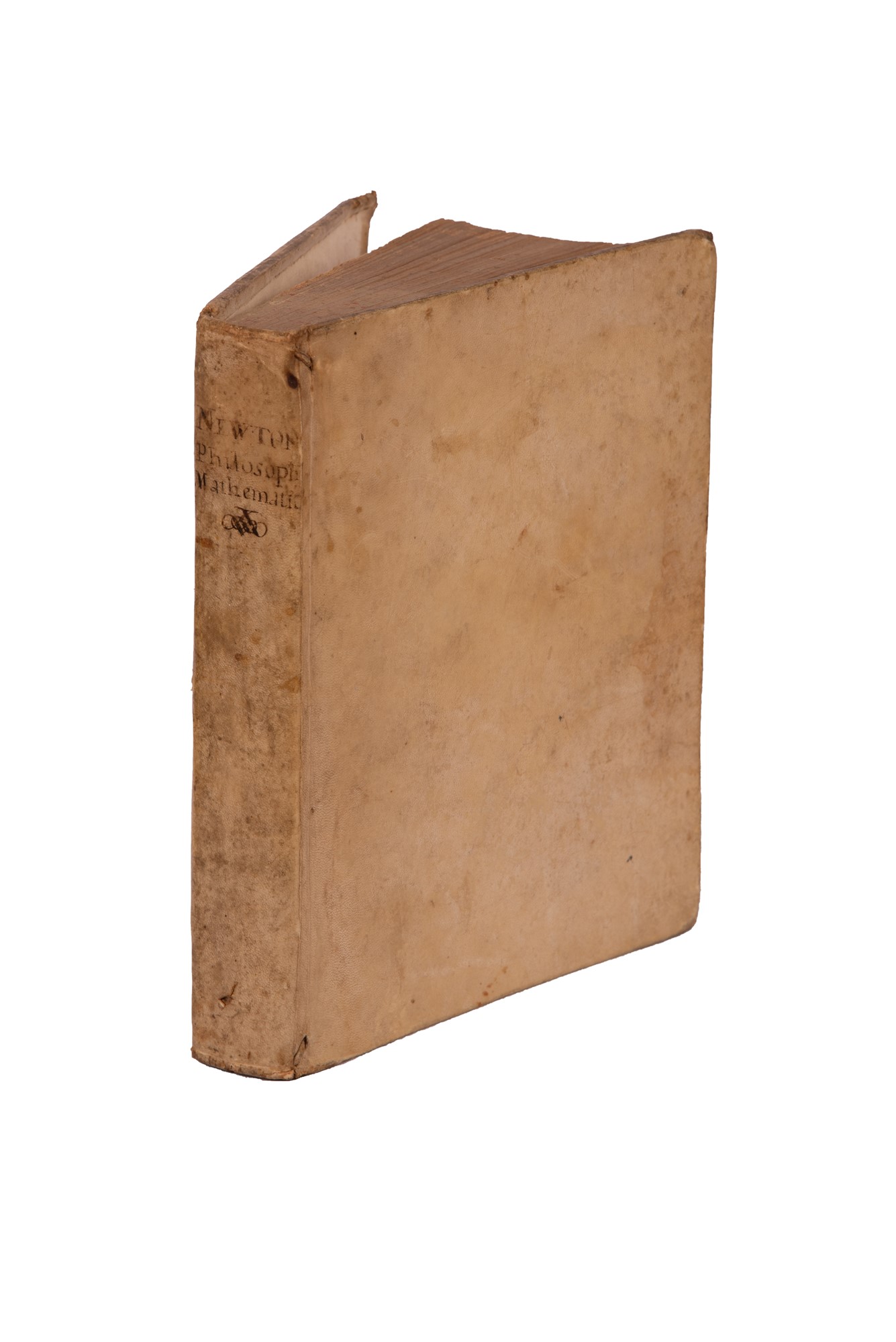 In 4° (mm 260x205). Pagg. (28), 484, (8). Frontespizio in rosso e nero con vignetta allegorica in rame, con putti e motto "Vis Unita Major". Firma di possesso non identificabile; una tavola ripiegata in rame f.t. raffigurante l'orbita della cometa, che secondo le tesi di Newton poteva essere non solo ellittica, ma anche iperbolica e parabolica. Centinaia di diagrammi silografici nel testo. Alle prime carte dedica a Carlo II, segue un poemetto di E.D. Halley a Newton e due prefazioni di Newton, datate "Londini, May 8 1686" e "Mar. 28 1713"; poi la prefazione editoriale curata da Roger Cotes professore di astronomia e filosofia sperimentale del Trinity College, datata "Cantabrigiae Maii 12. 1713" e infine lo "Index Capitum totius operis". Pergamena rigida coeva con unghie, titolo su tassello in oro al dorso, tagli blu. Seconda edizione, prima tiratura di Amsterdam (una seconda olandese fu pubblicata nel 1723) editata mentre Newton lavorava ancora ai suoi studi, redatta sulla seconda del 1713, la prima a contenere lo "Scholium generale" scritto in risposta alle obiezioni di Berkeley e Leibniz, ma rivista e corretta interamente ad Amsterdam; appaiono per la prima volta aggiunte e correzioni dell'A. ed anche le incisioni vengono eseguite e aggiunte apposta per questa edizione.
