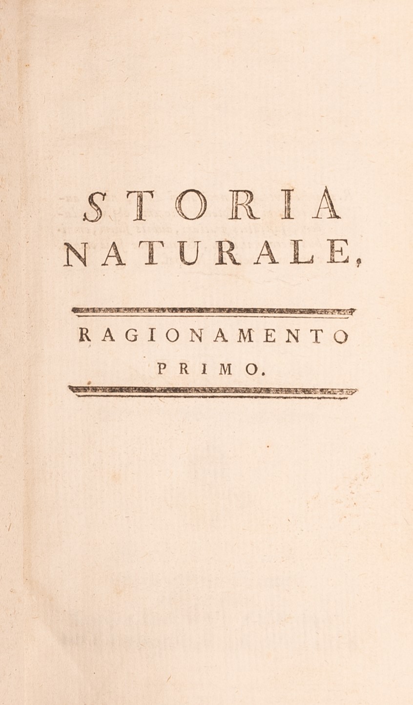 70 - Storia naturale, generale e particolare del sig. N. De Buffon, intendente del Giardino del Re, dell'Accademia frnacese e di quella delle scienze, trasportata in francese