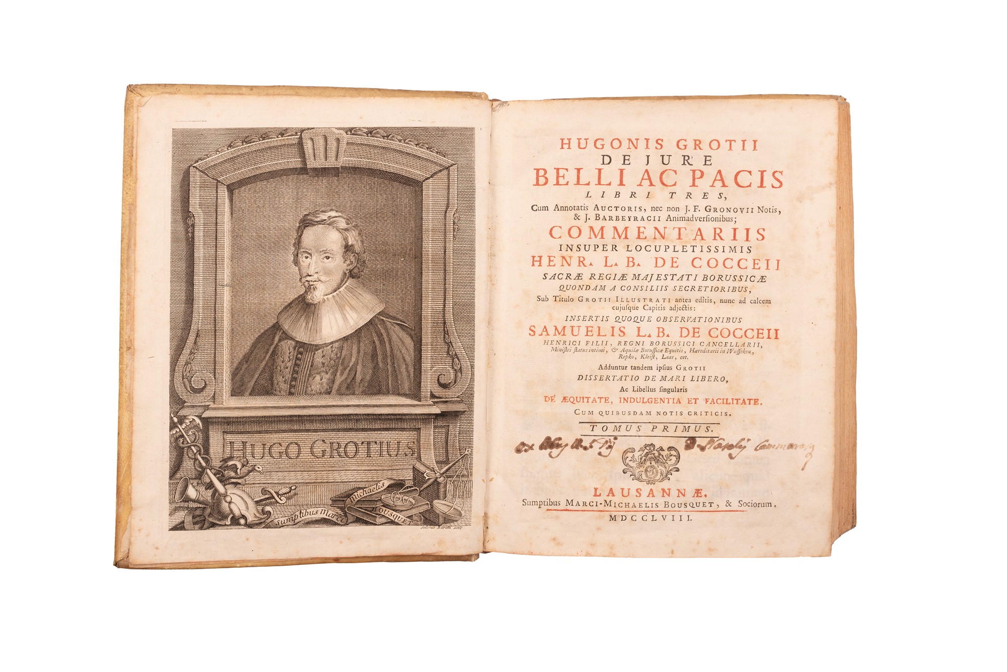 GROZIO UGOHUGONIS GROTII DE JURE BELLI AC PACIS LIBRI TRES CUM ANNOTATIS AUCTORIS, NEC NON J. F. GRONOVII NOTIS ET J. BARBEYRACII ANIMADVERSIONIBUS, COMMENTARIIS... HENR. L. B. DE COCCEII... ADJECTIS, INSERTIS QUOQUE OBSERVATIONIBUS SAMUELIS L. B. DE COCCEII