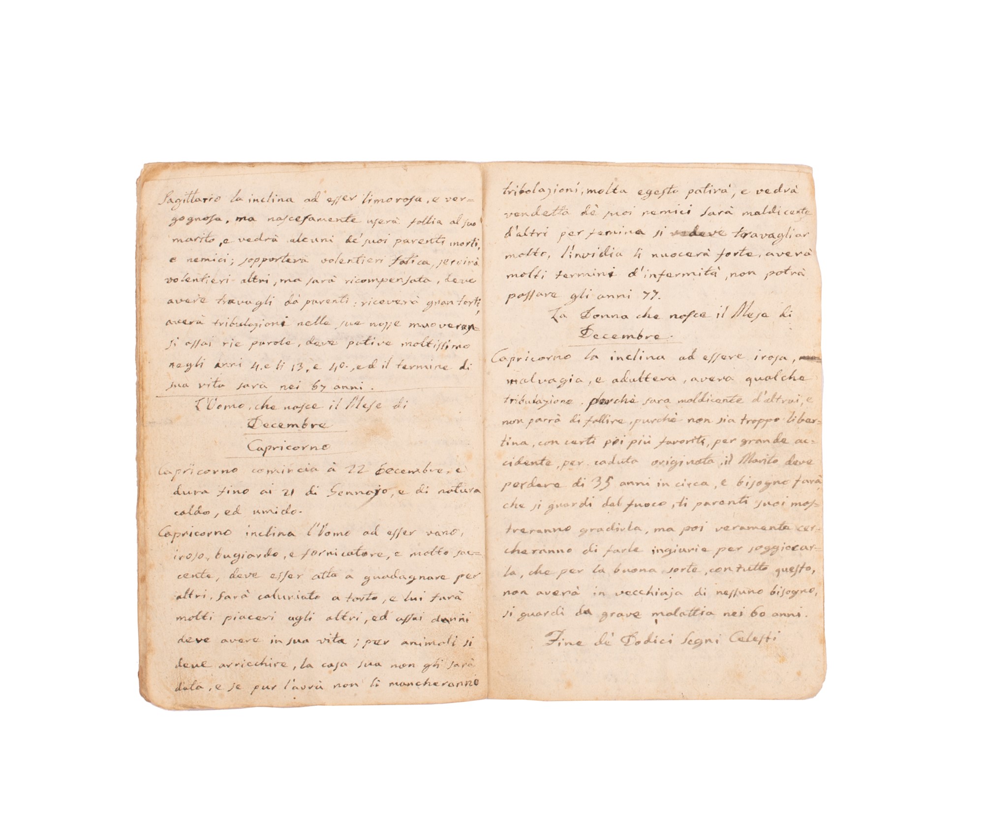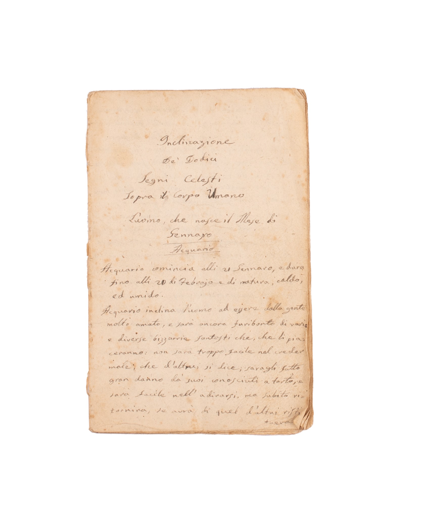 manoscritto di 33 pagine contenente: "Inclinazione de' dodici segni celesti sopra il corpo umano"