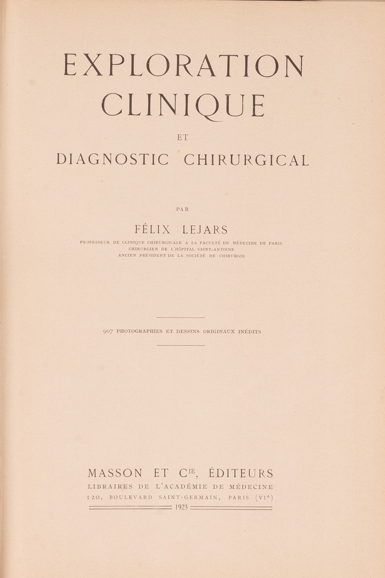 - Exploration clinique et diagnostic chirurgical di Felix Lejars. Masson e C. Editeurs, 1923