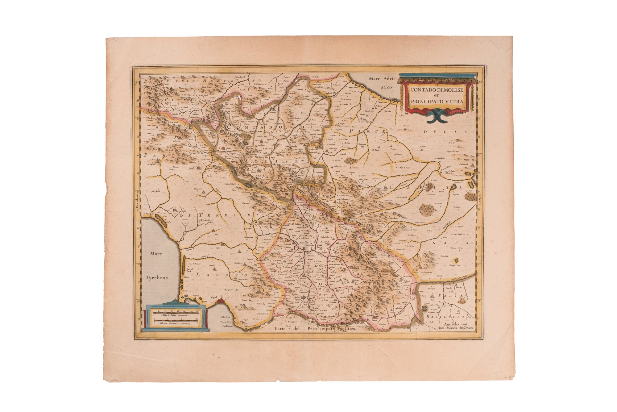 - Strettamente legata nel formato e nei tratti estetici alla Capitanata. Olim Mesapiae et lapygia pars (inv. 279), la carta, realizzata da J. Janssonius (1588-1664) entra a far parte del Theatrum Italiae di Hondius edito nel 1636.
