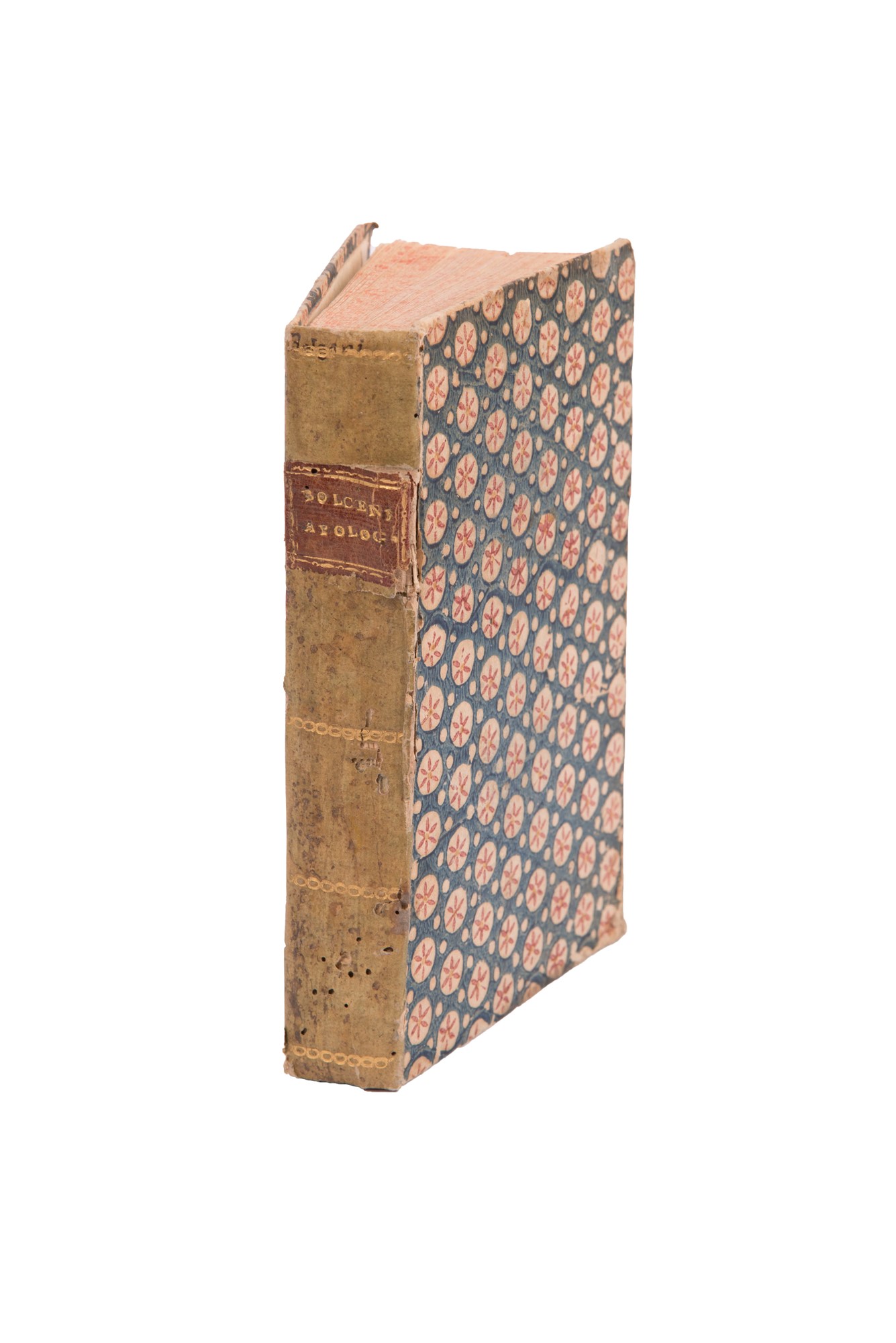 in mezza pelle. titoli e fregi in oro, testatina in parte staccata, piatti con motivi geometrici. qualche segno di foxing nel testo