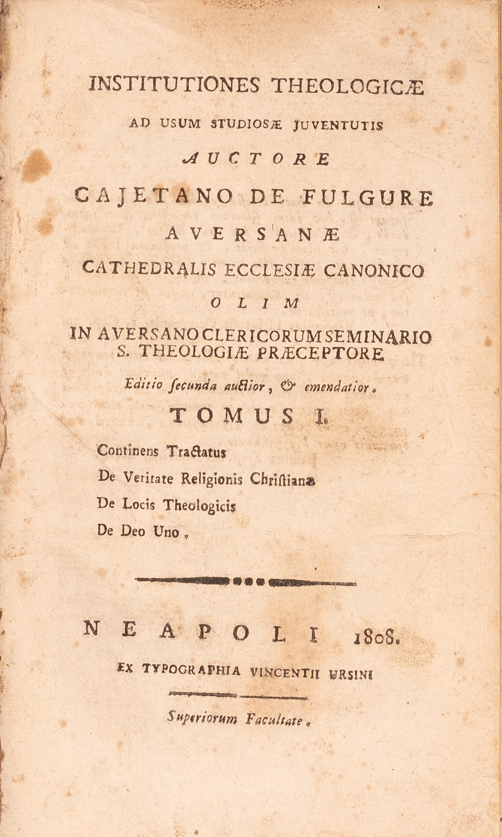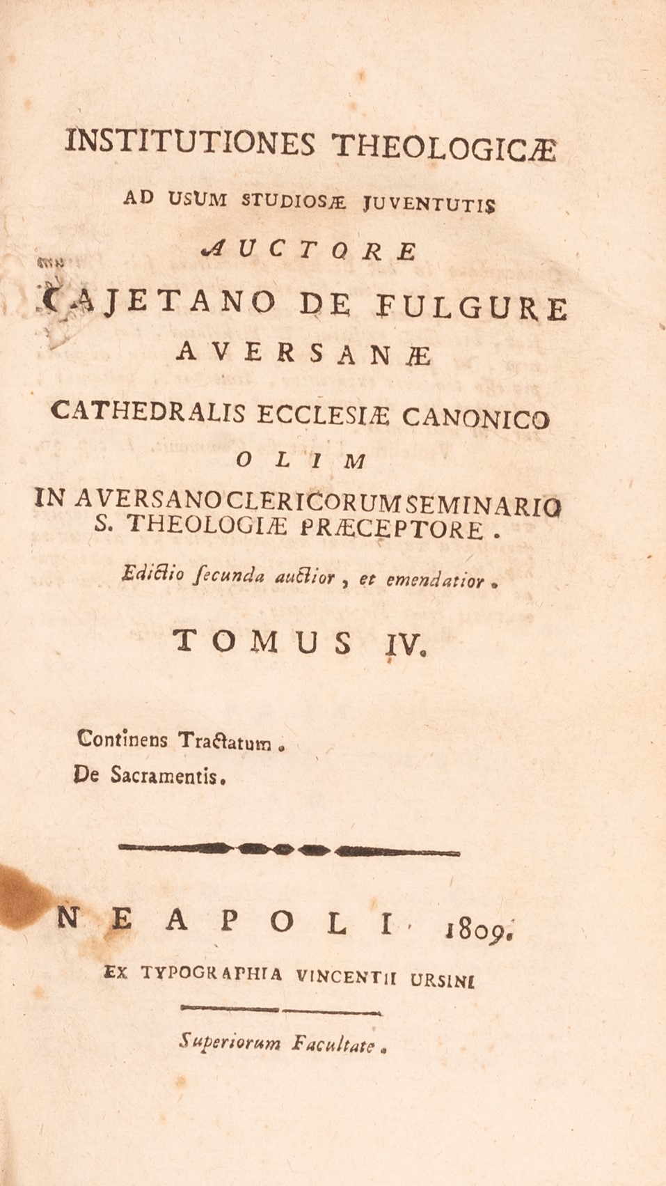 Institutiones theologicae ad usum studiosae juventutis auctore Cajetano De Fulgure Aversanae