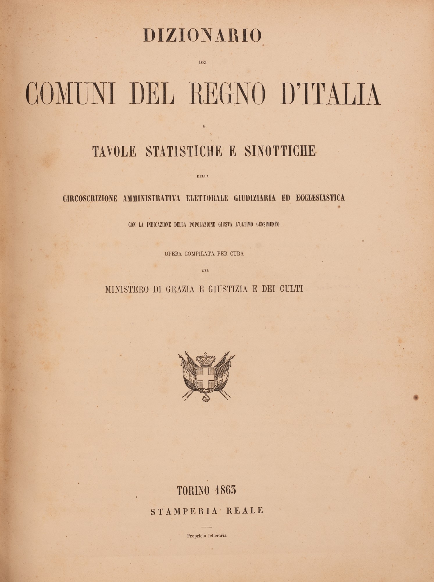 Lotto 524 | Dizionario dei comuni del Regno d'Italia e tavole statistiche e sinottiche della circoscrizione amministrativa.