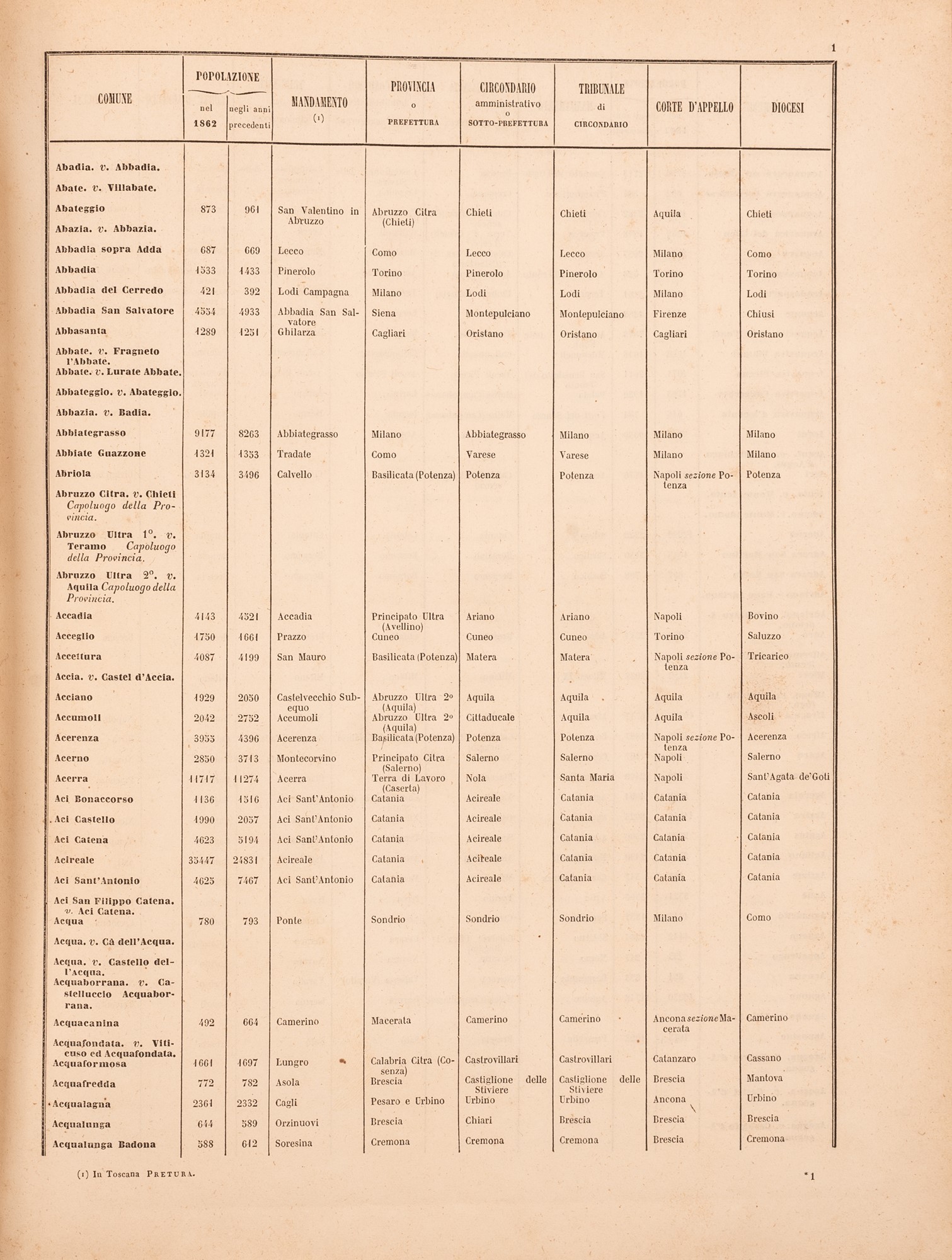 Dizionario dei comuni del Regno d'Italia e tavole statistiche e sinottiche della circoscrizione amministrativa.