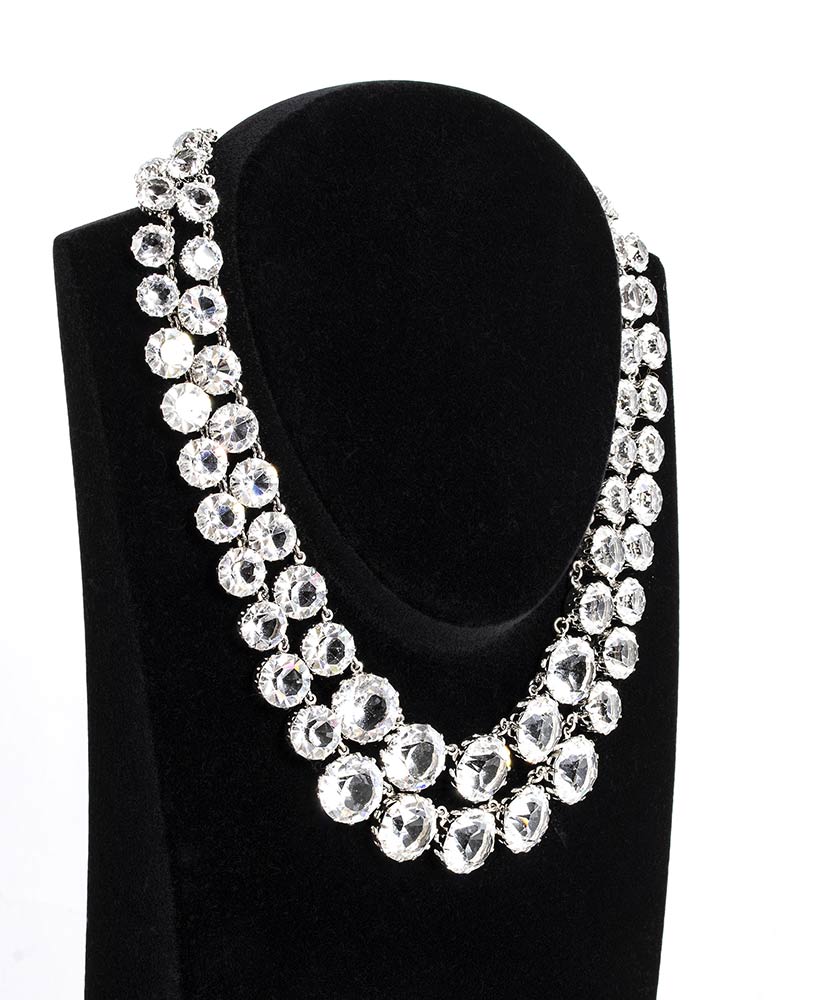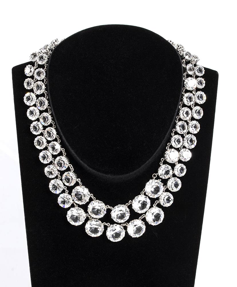 Collana Christian Dior anno 1960, due fili composti da elementi in metallo argentato e cristalli sfaccettati, grado di condizione generale B