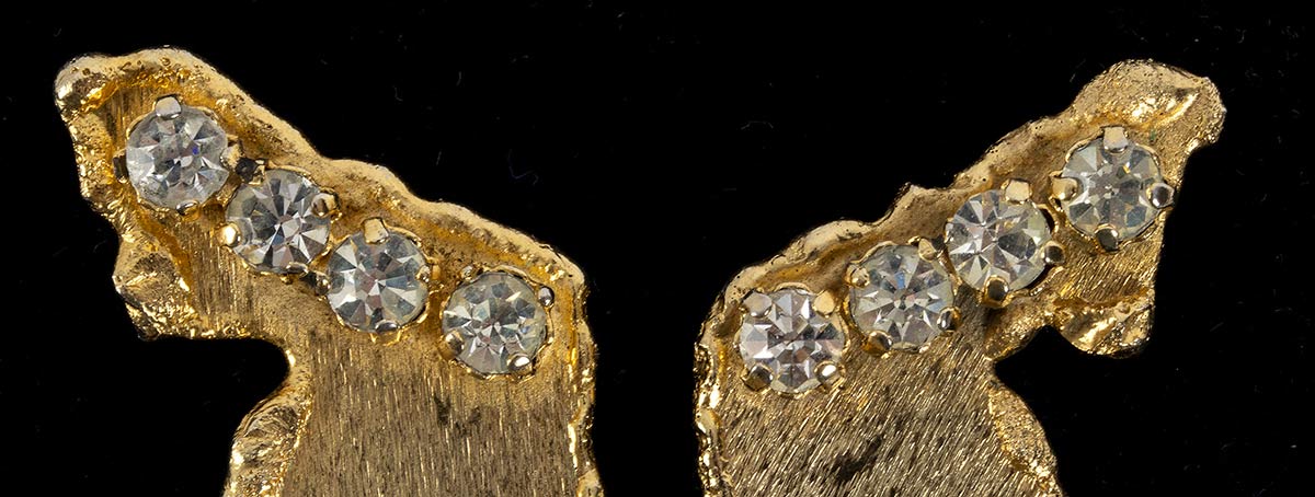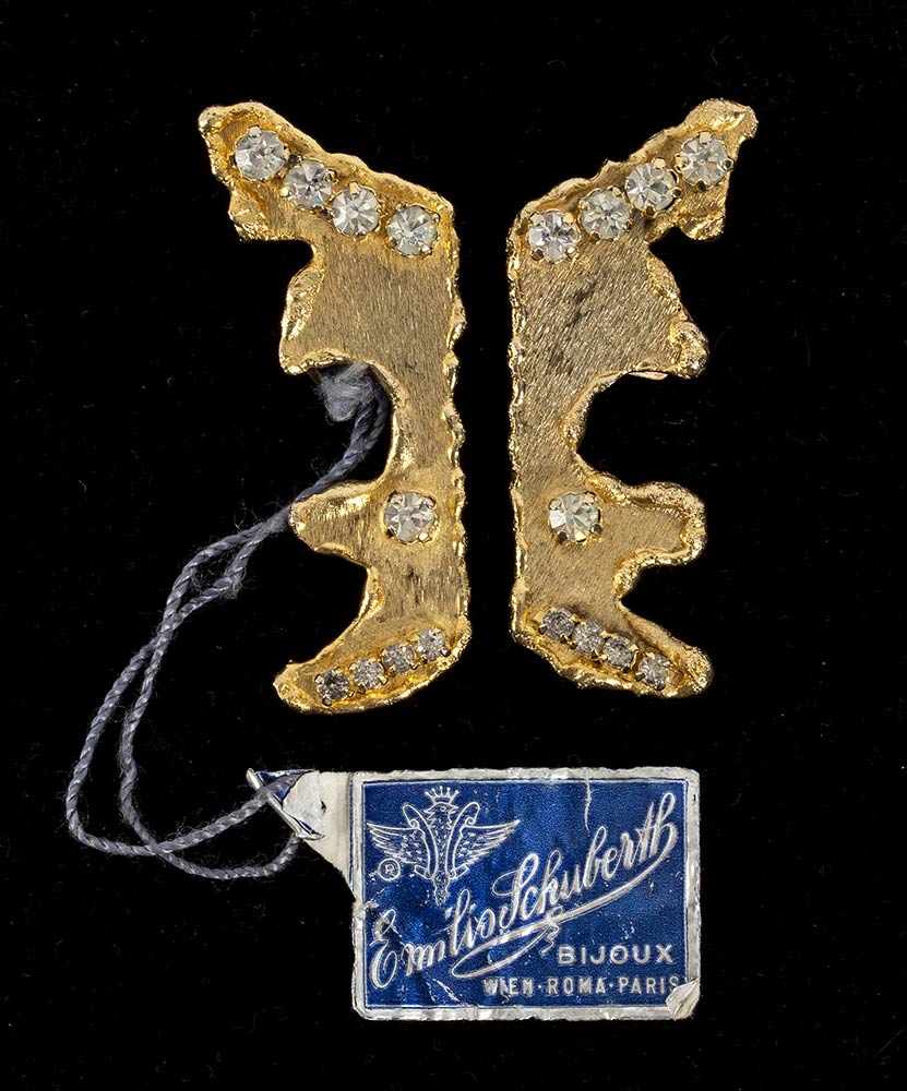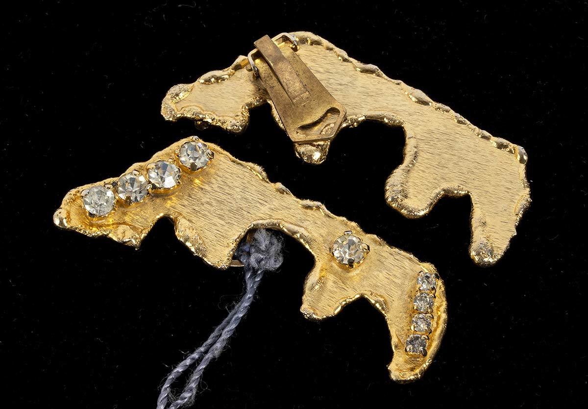 Orecchini a clip metà anni 60 Emilio Schuberth in metallo dorato e strass, grado di condizione generale B
