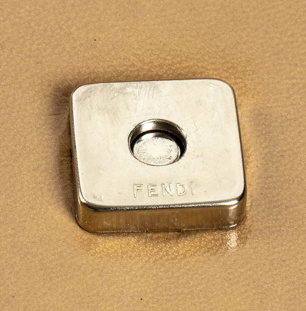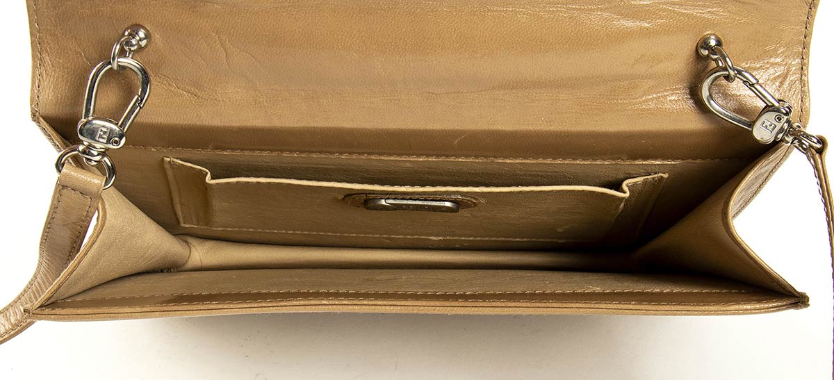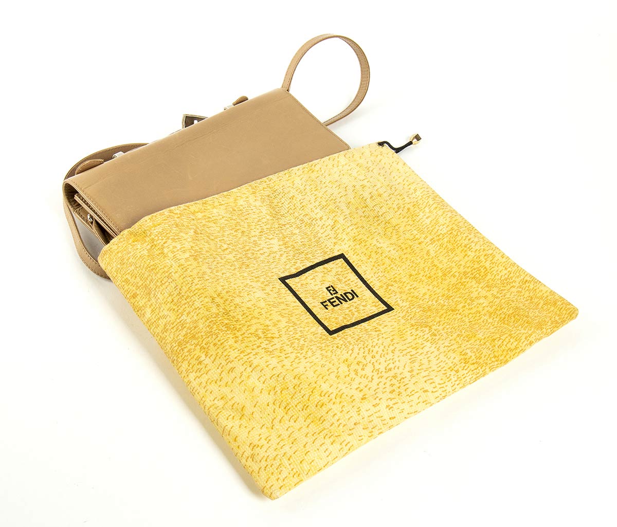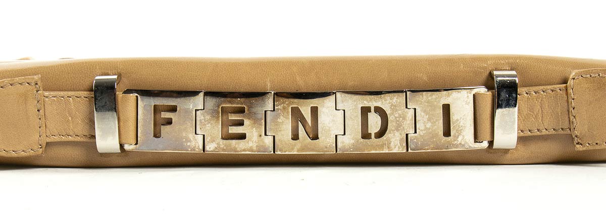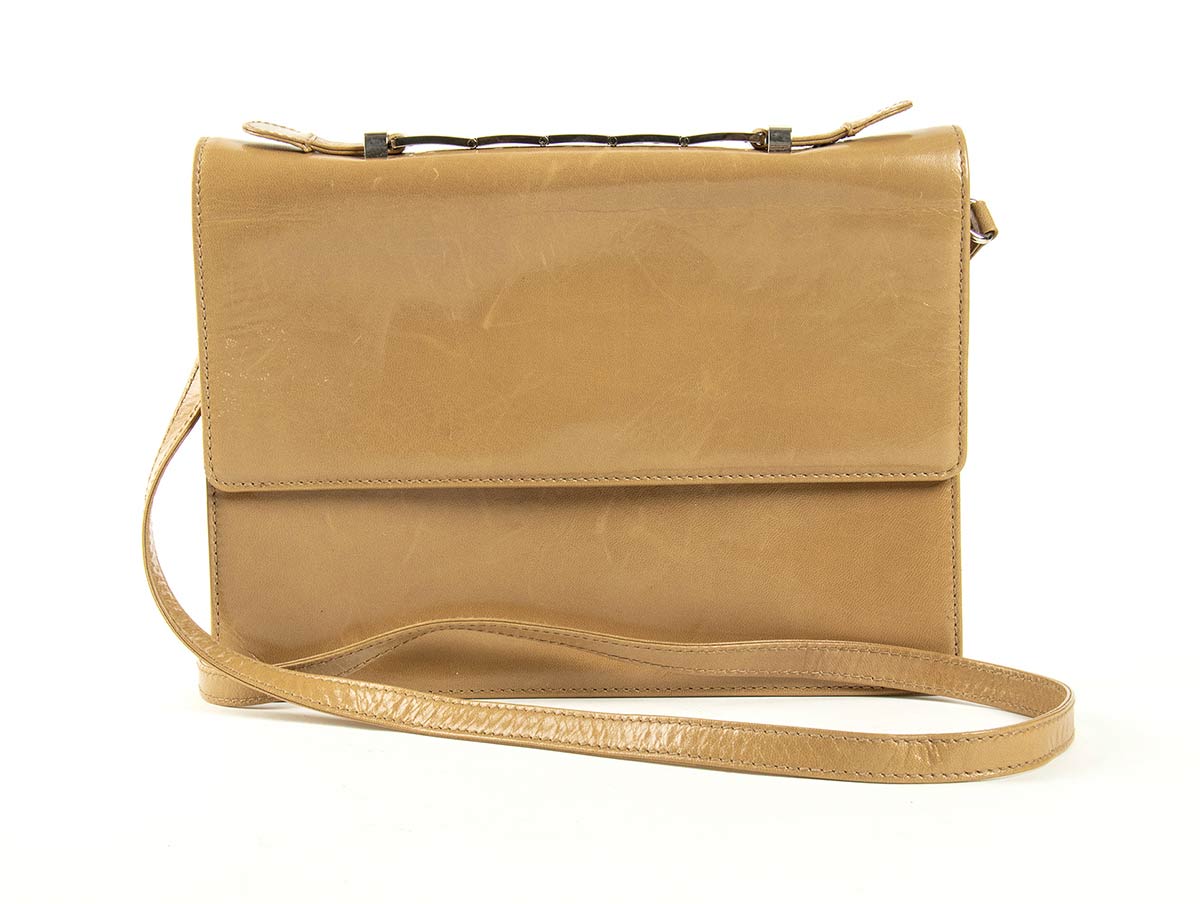 Borsa in pelle marrone chiaro, manico in metallo inciso