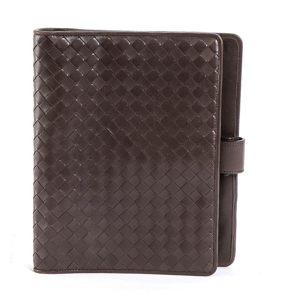 Porta agenda Bottega Veneta 2015 ca in pelle intrecciata marrone, grado di condizione generale B