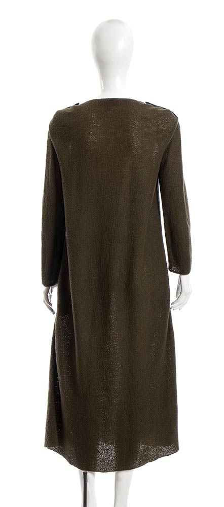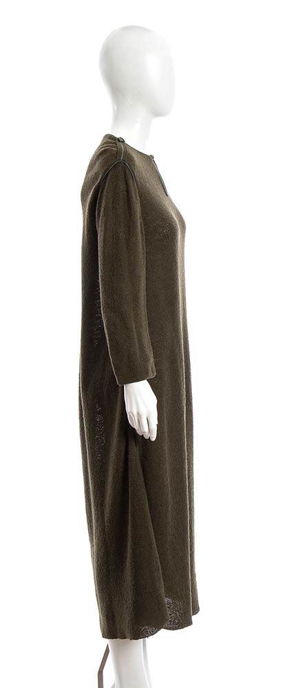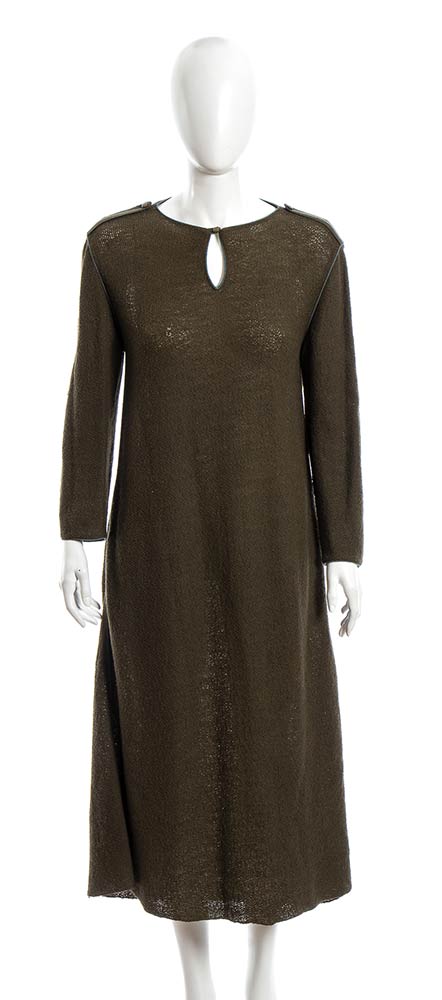 Abito Callaghan (by Gianni Versace) inizio anni 80 in lana marrone, grado di condizione generale B/C (segni di utilizzo)