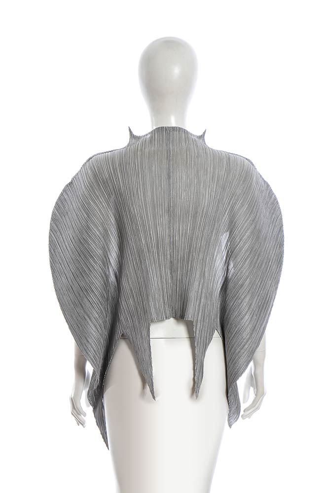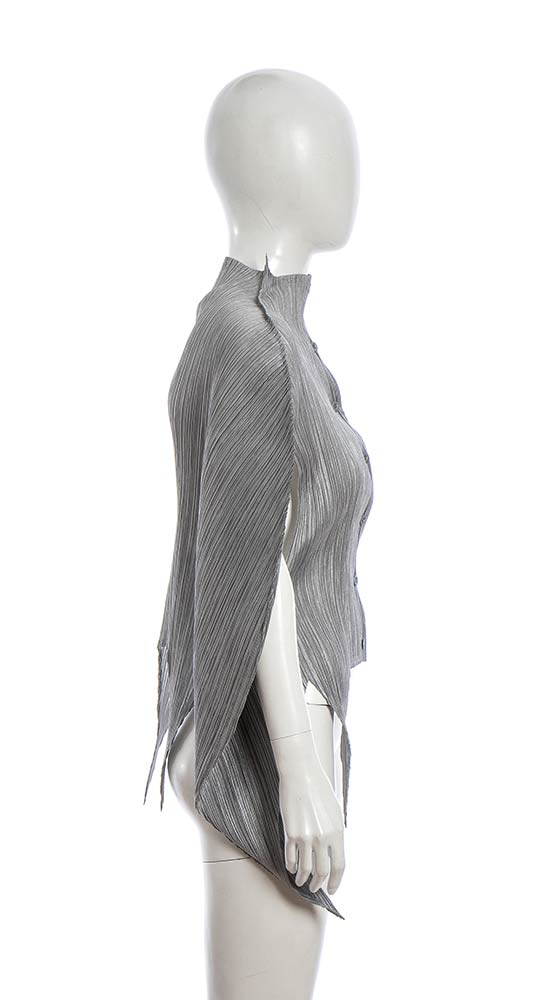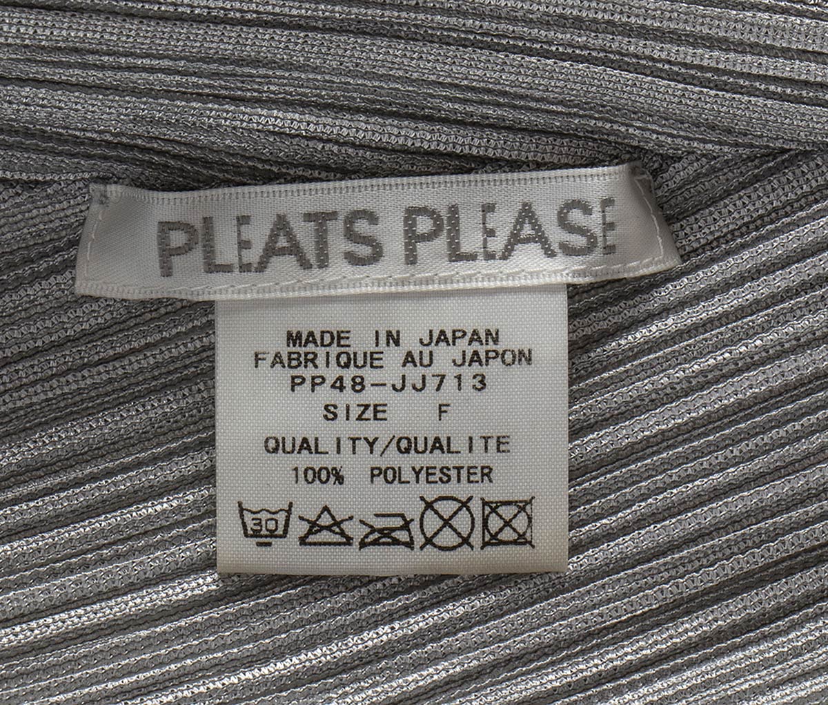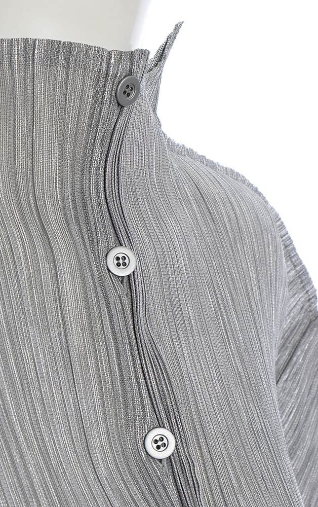 Camicia fine anni 90/inizio anni 2000 Issey Miyake Pleats Please in tessuto sintetico plissettato grigio chiaro, grado di condizione generale B