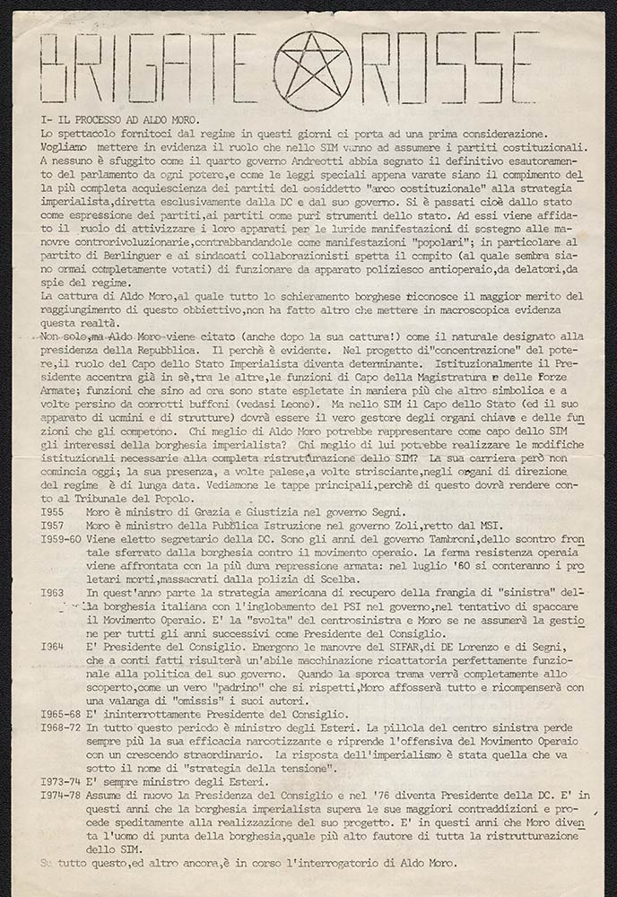 Brigate Rosse Volantino comunicato n.2 "Aldo Moro"