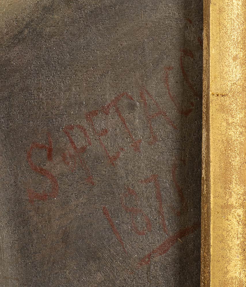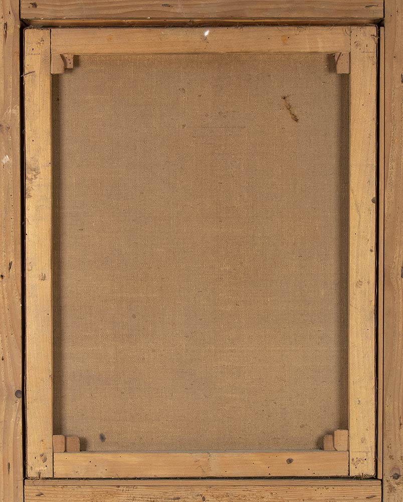 In buone condizioni, lieve danno alla tela con mancanza di colore in alto a sinistra, facilmente restaurabile. Misure della tela cm.59x78, della cornice cm.91x112