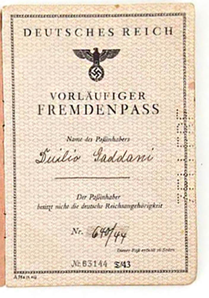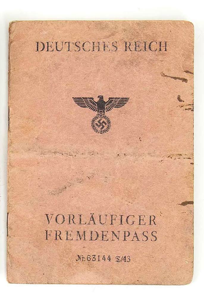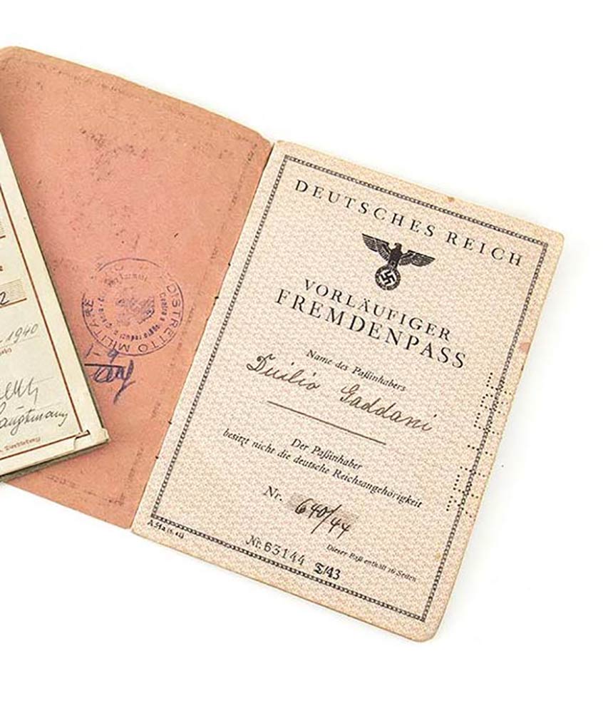 Lasciapassare concesso a lavoratore italiano il dicembre del 44 e valido fino al dicembre 46, completo di foto e timbri italo /tedeschi