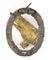 Aquila in bronzo dorata applicata con due rivetti a serto di foglie di quercia e alloro, punzonata Junker Berlin, spilla verticale al verso