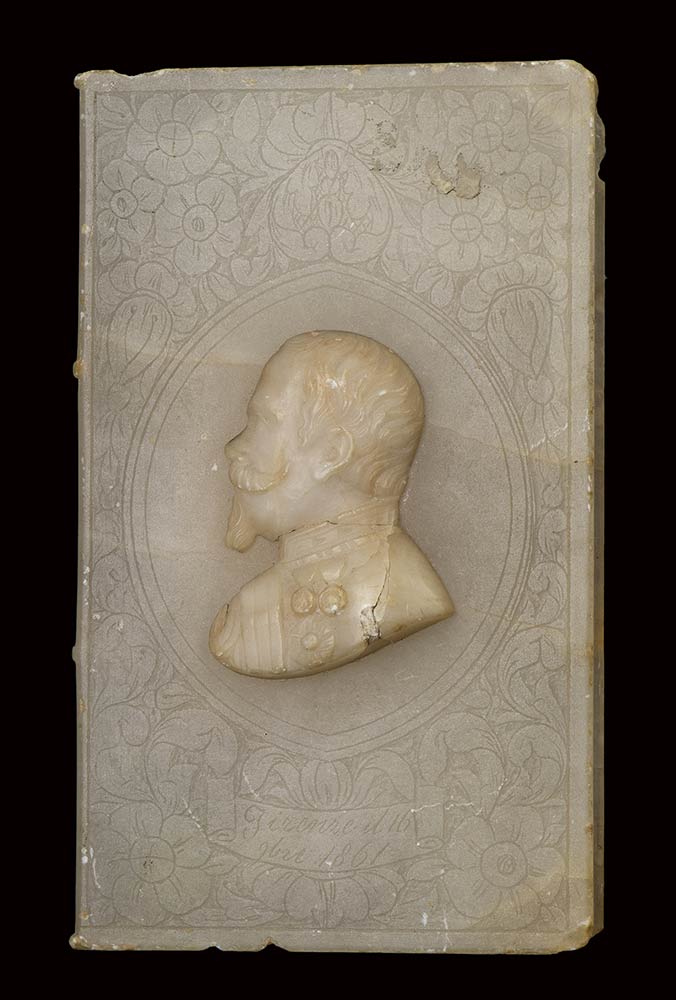 A forma di libro, effige di re Vittorio Emanuele II , realizzato in occasione della proclamazione del Regno d'Italia, a Firenze nel 1861