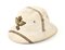 Bel casco trapuntato in cotone bianco, fregio da ufficiale di Stato Maggiore ricamato d'oro su panno nero, interno con fodera con impresso il logo dell'Unione Militare