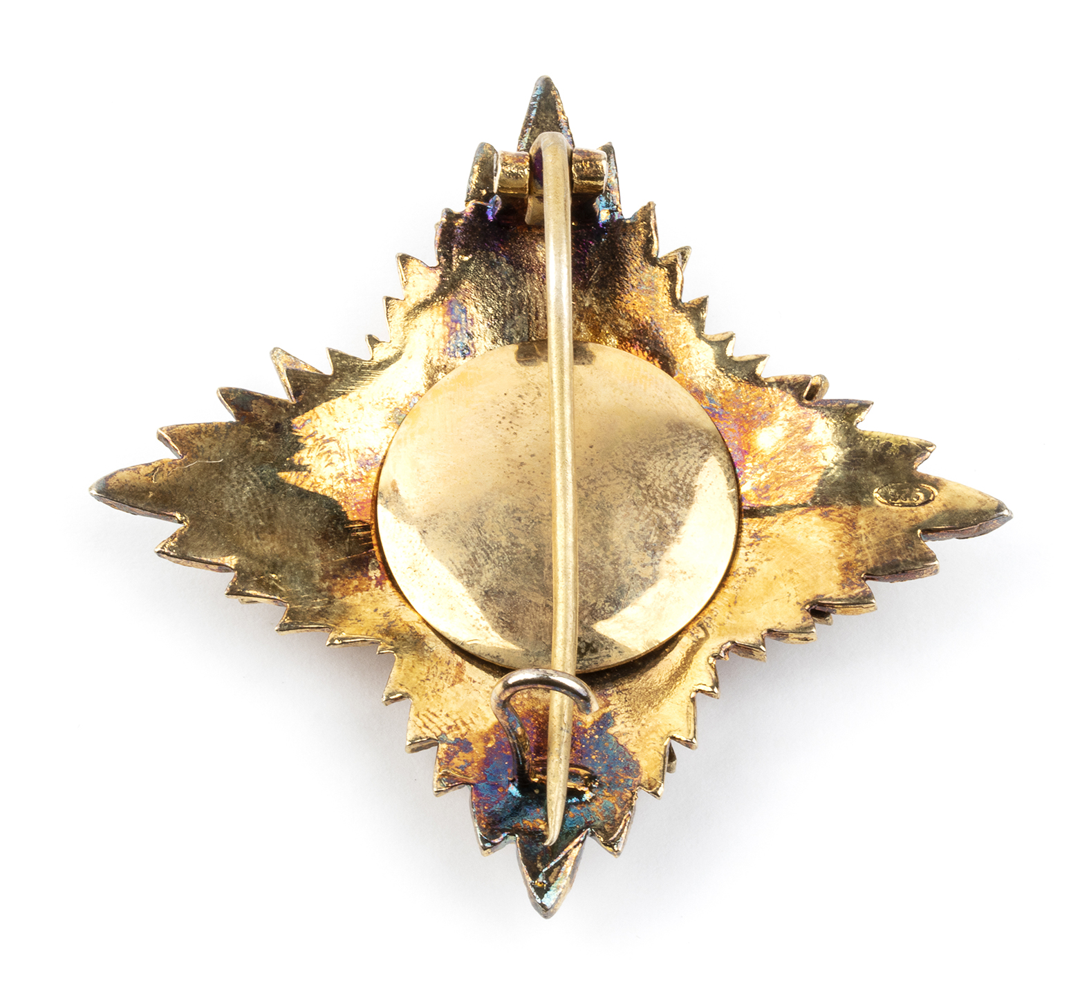 placca a quattro raggi in argento dorato con sfaccettature, con applicazioni in argento smaltato, 70 mm