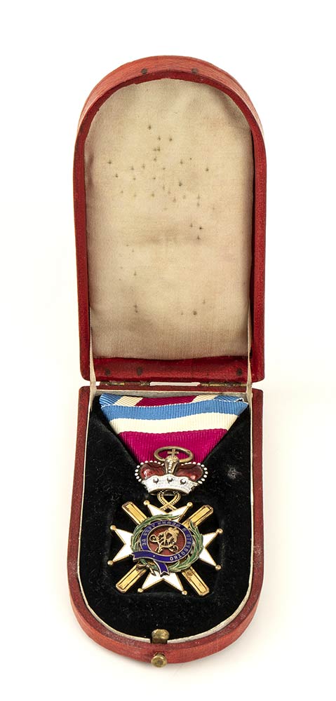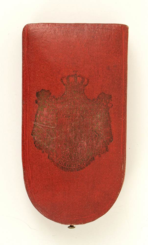 Rara insegna da cavaliere dell'Ordine di Takovo, istituito nel 1865 e soppress0 nel 1903,argento e smalti policromi,ottima fattura, in astuccio