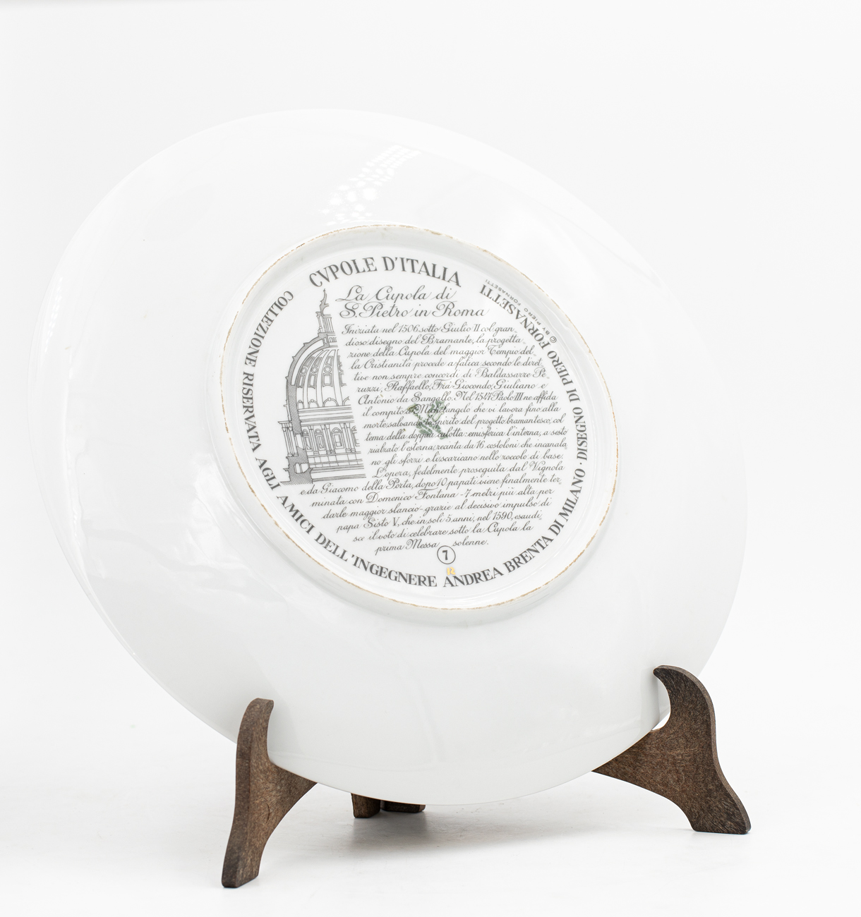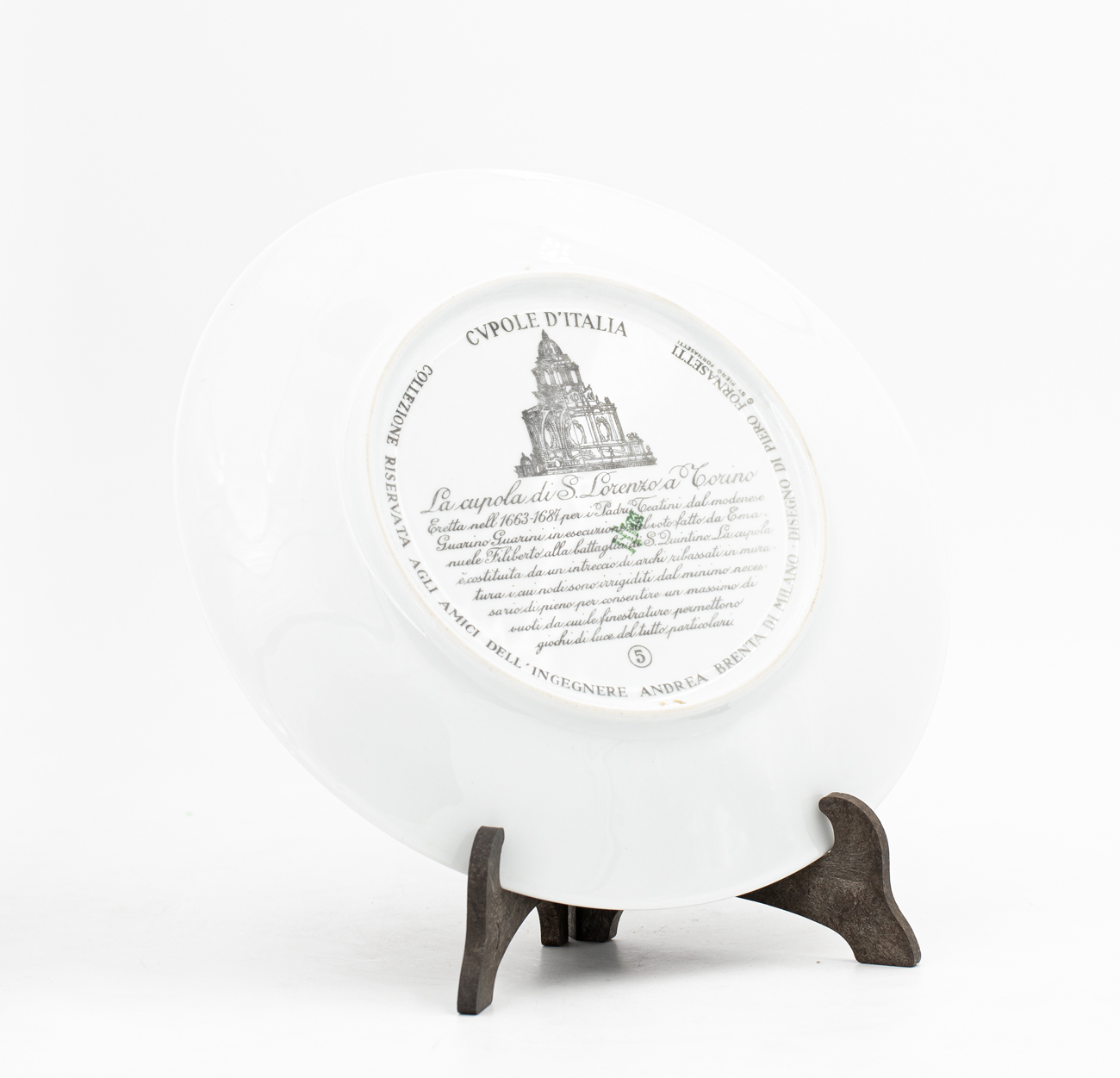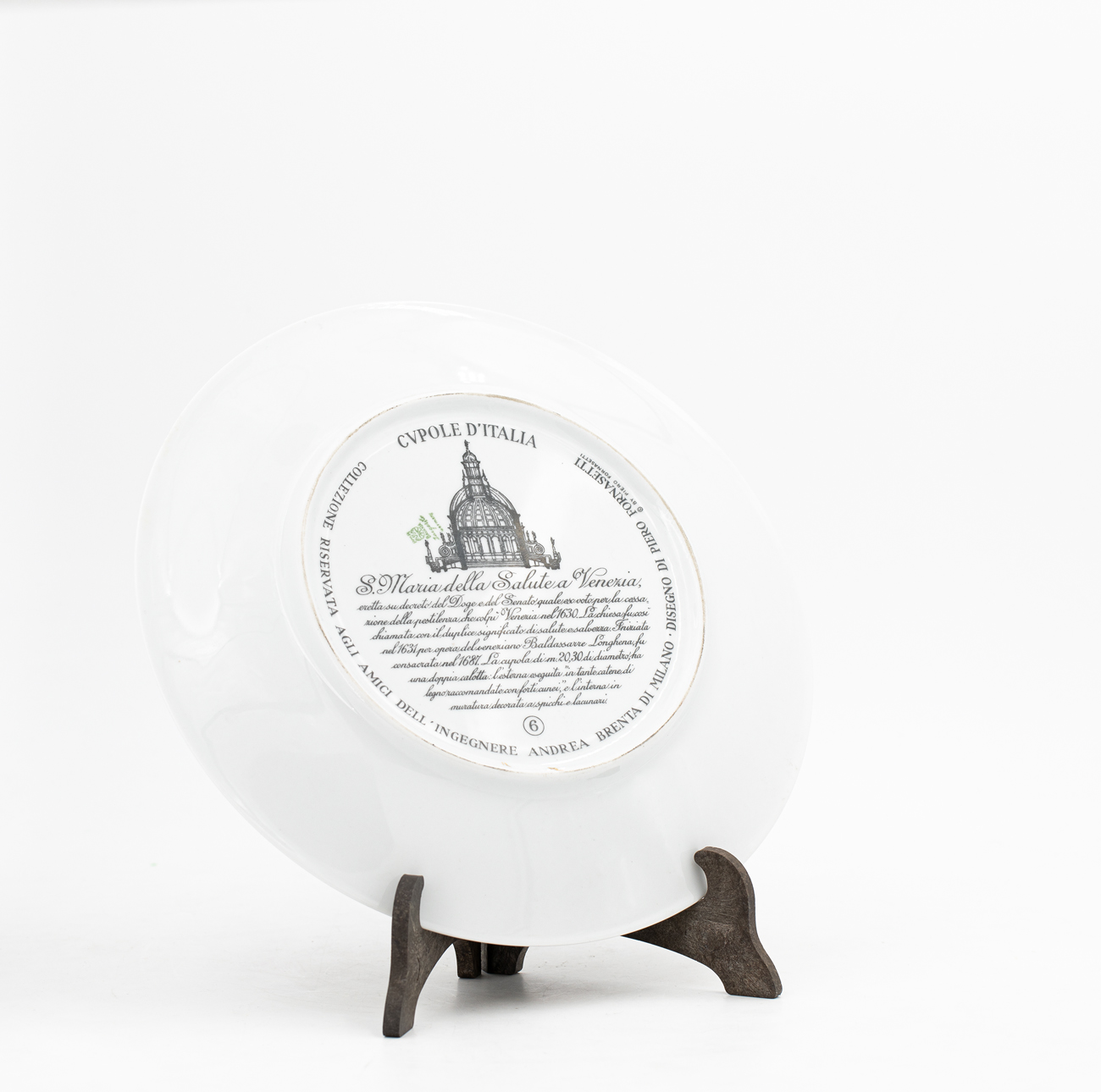 Lotto unico di sette piatti in porcellana serigrafata della serie 'Cupole d'Italia'