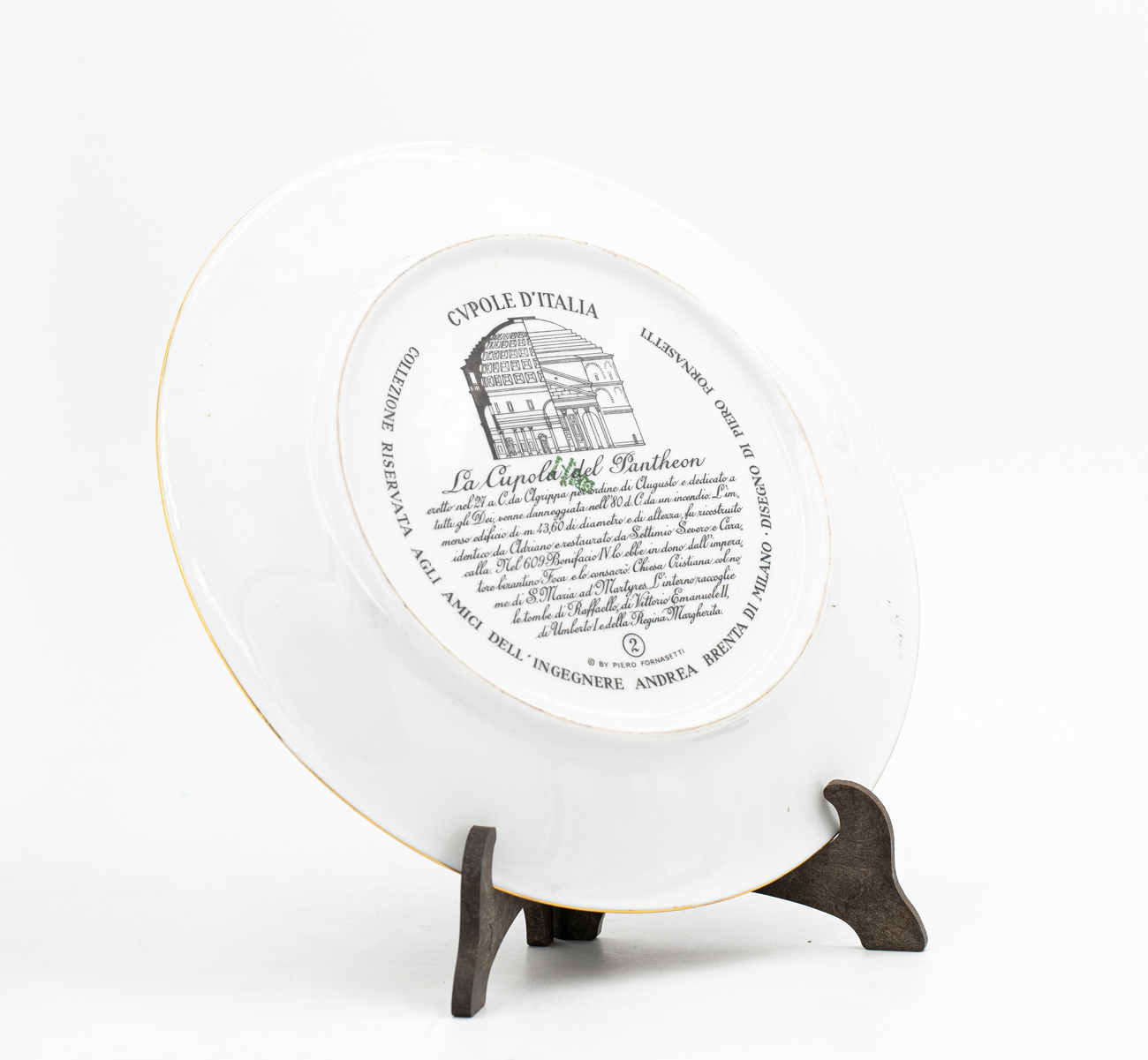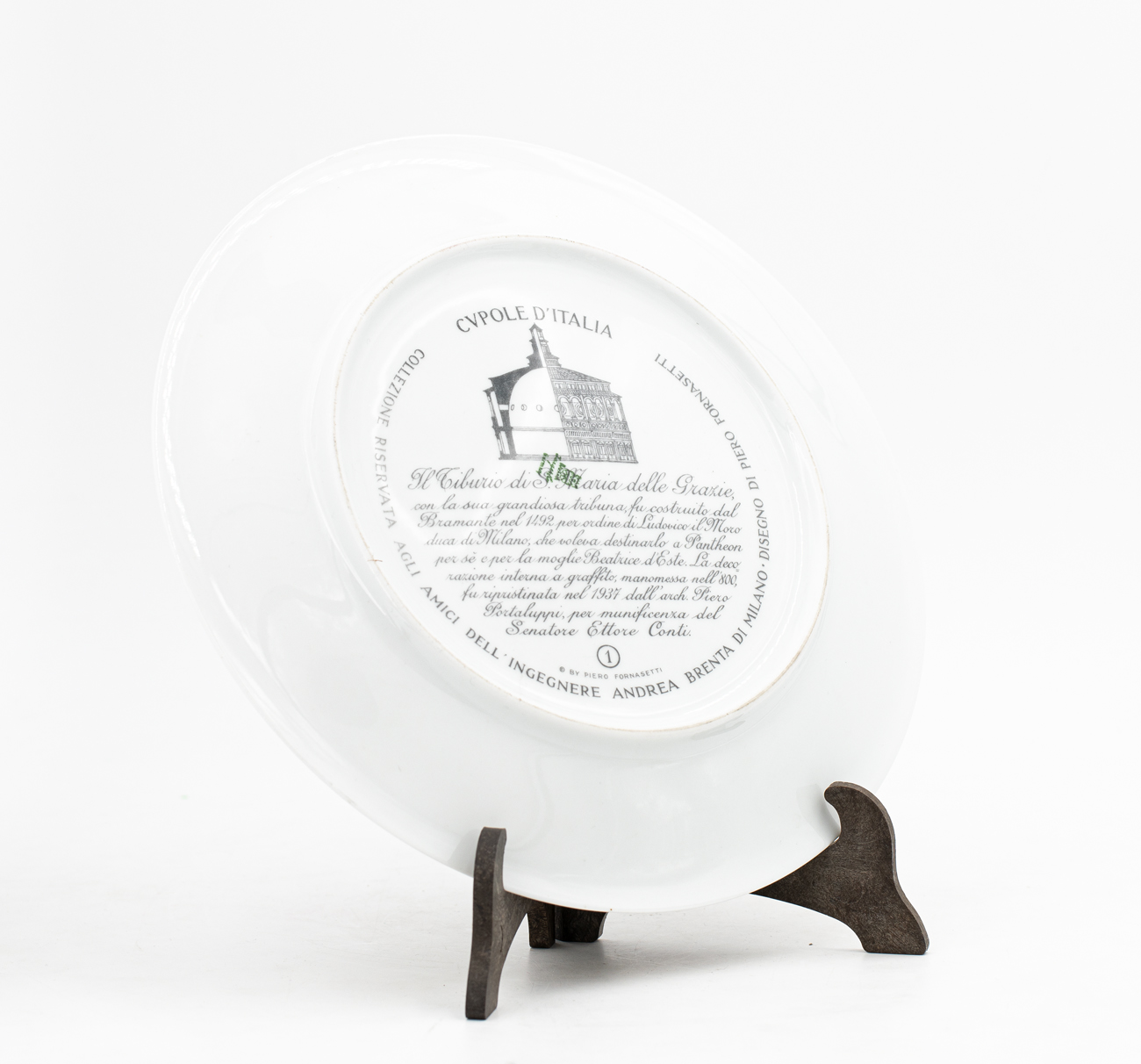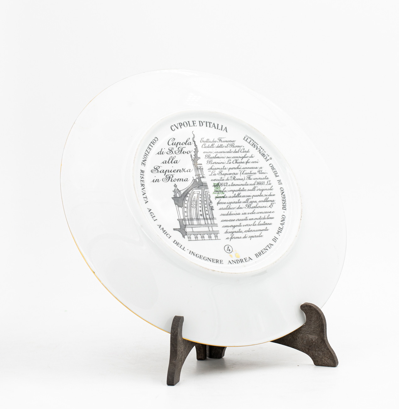 Lotto unico di sette piatti in porcellana serigrafata della serie 'Cupole d'Italia'