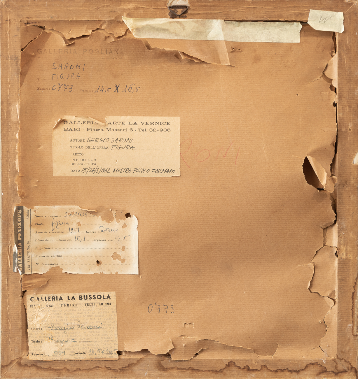 Etichetta della Galleria Penelope (RM) al retro del cartone protettivo