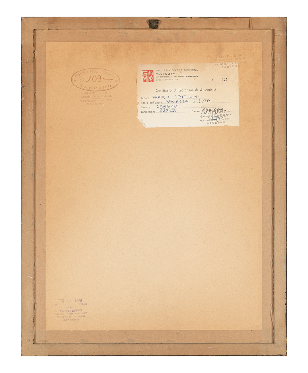 Etichetta e timbri della Galleria d'Arte Matuzia (IM) al retro