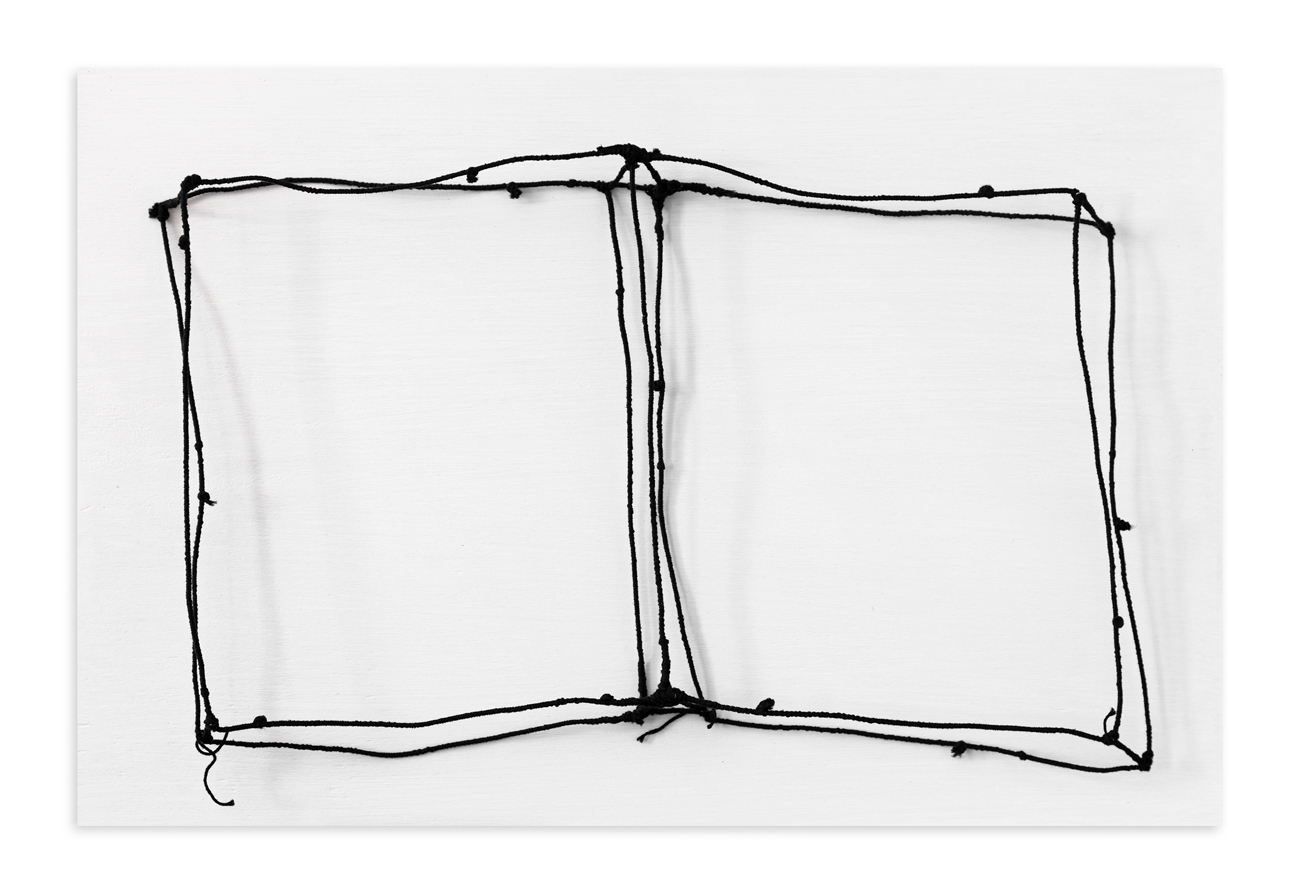 Filo nero e filo di ferro applicato su tavola