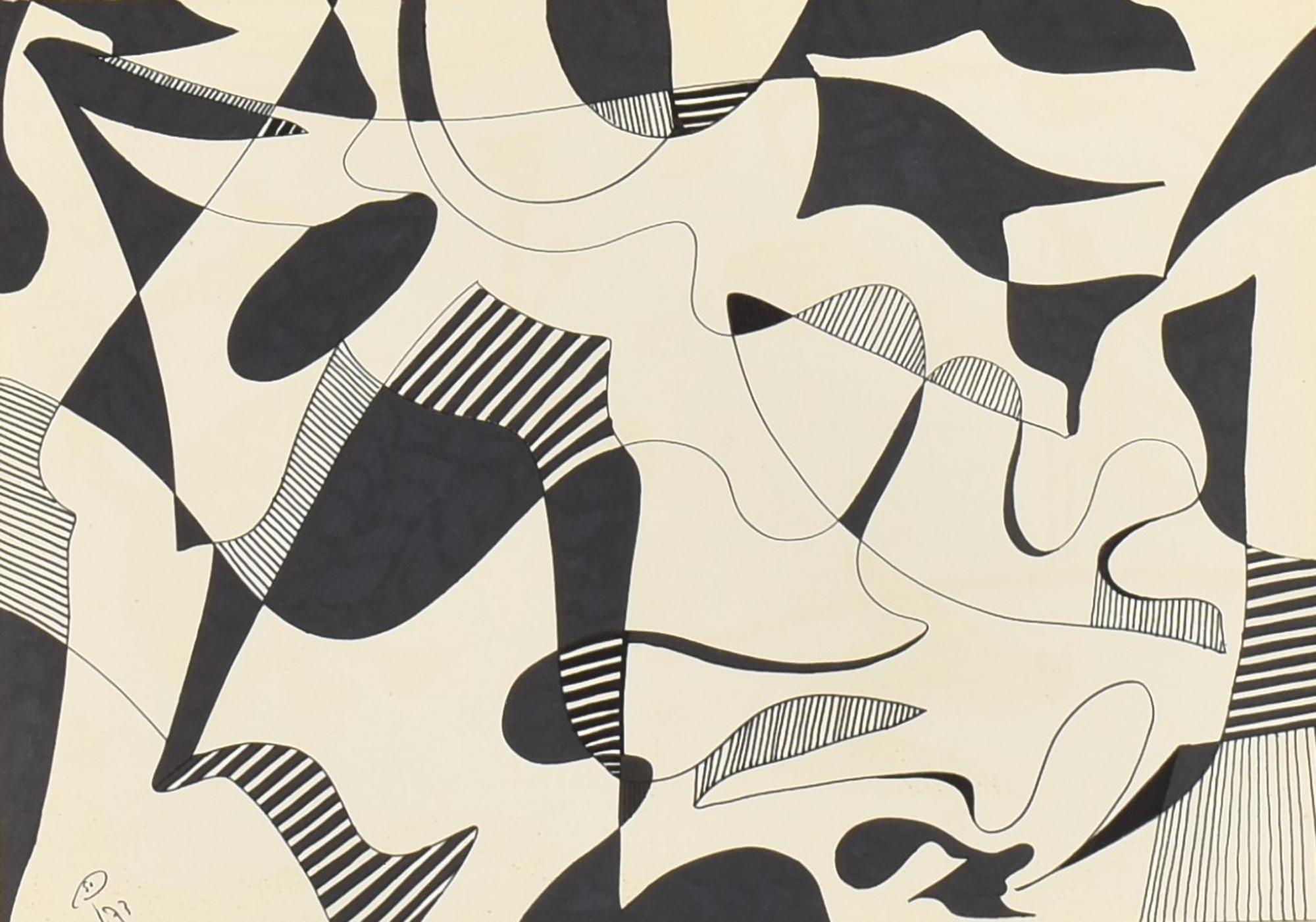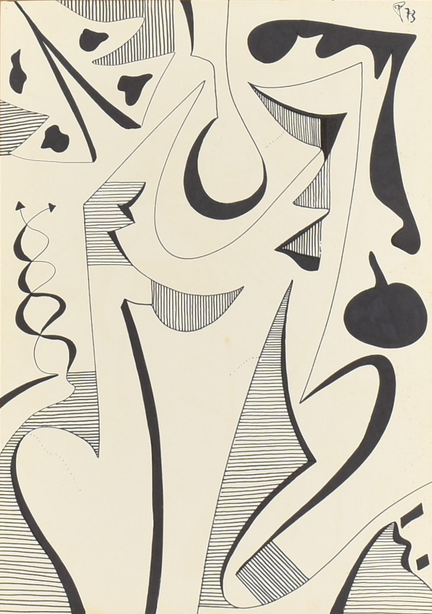 Ignoto COMPOSIZIONI lotto di 4 pennarelli su carta, cm 34x24 ciascuno sigla e...