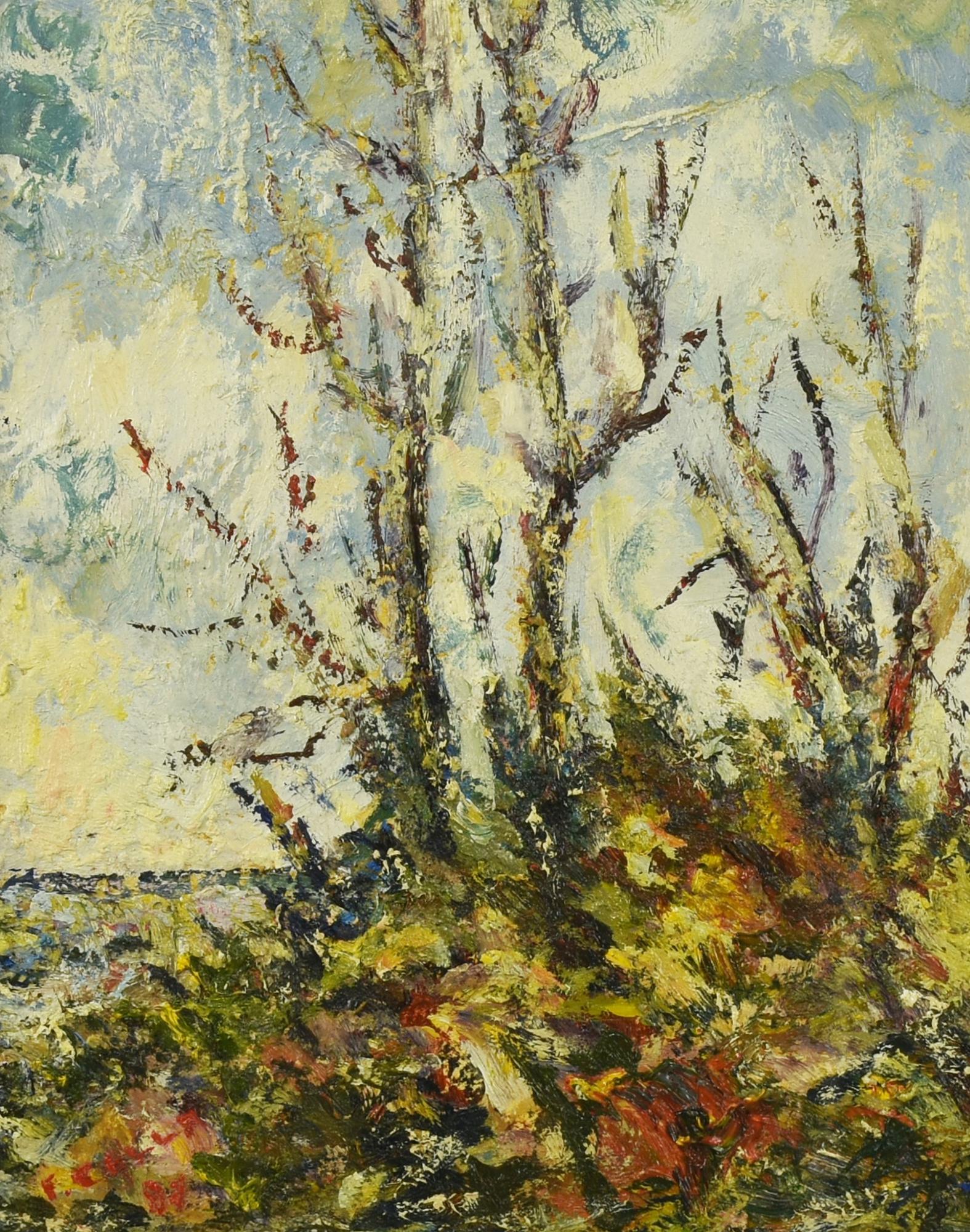 Francesco Cella ARBUSTO IN FIORE olio su tavola, cm 30x24 firma sul retro:...