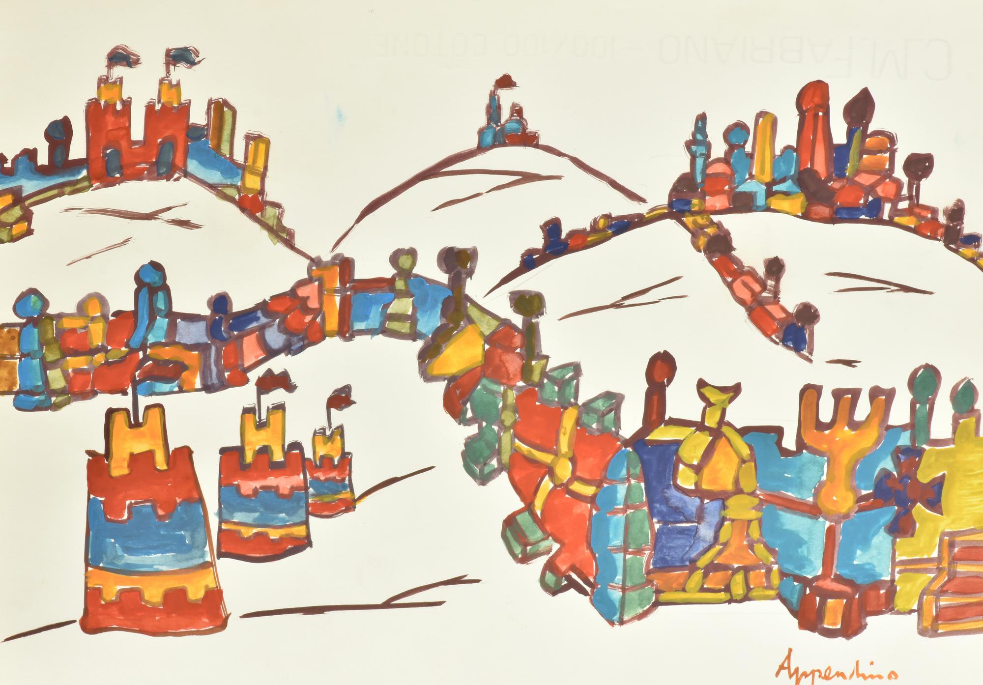 Appendino CASTELLI tecnica mista su carta Fabriano, cm 23,5x33 firma