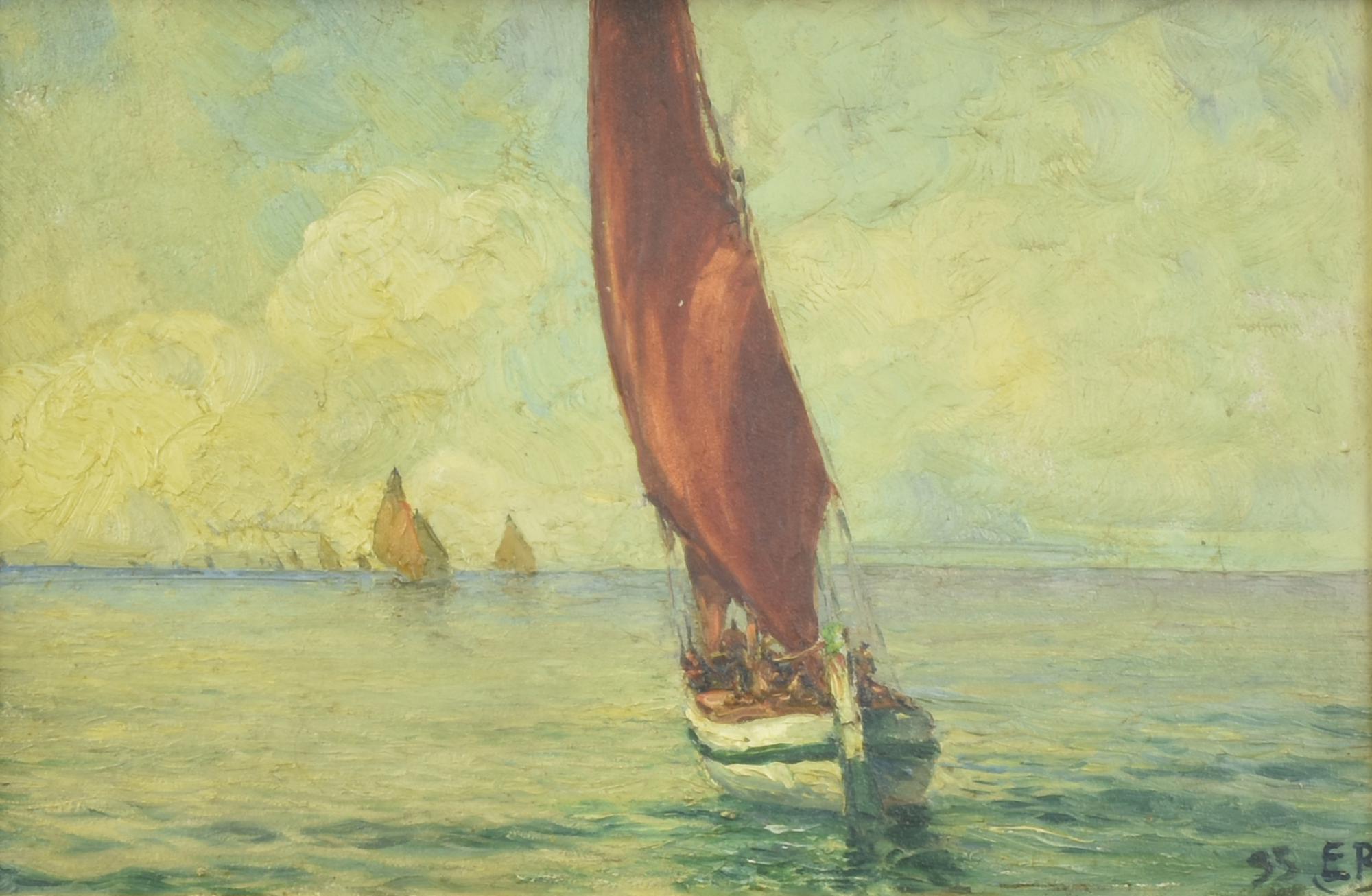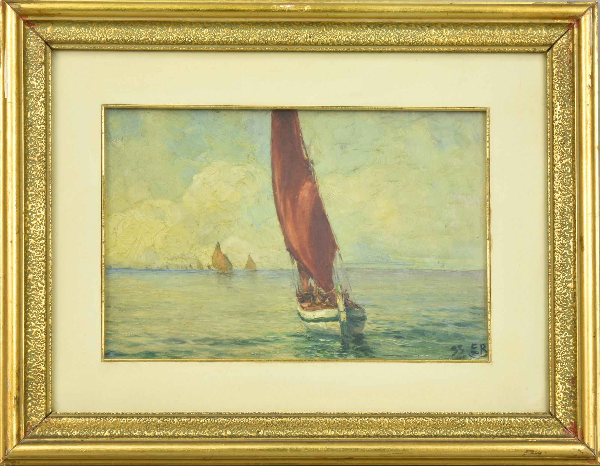 Ignoto REGATA olio su tavola, cm 17x25 firma