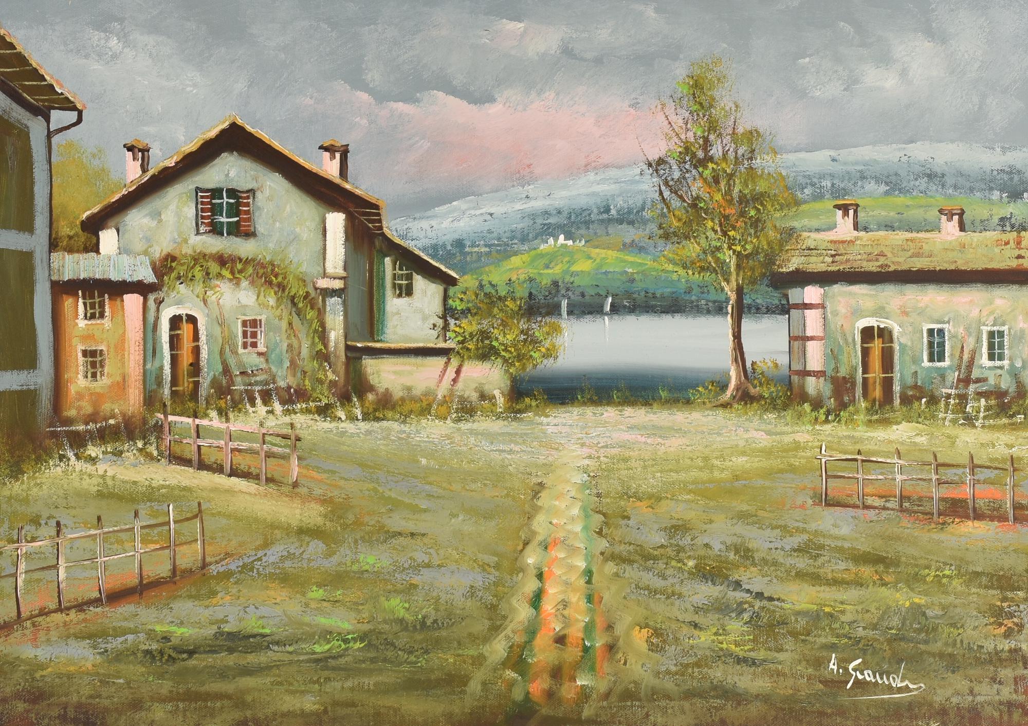 A. Grassi PAESAGGIO olio su tela, cm 50x70 firma
