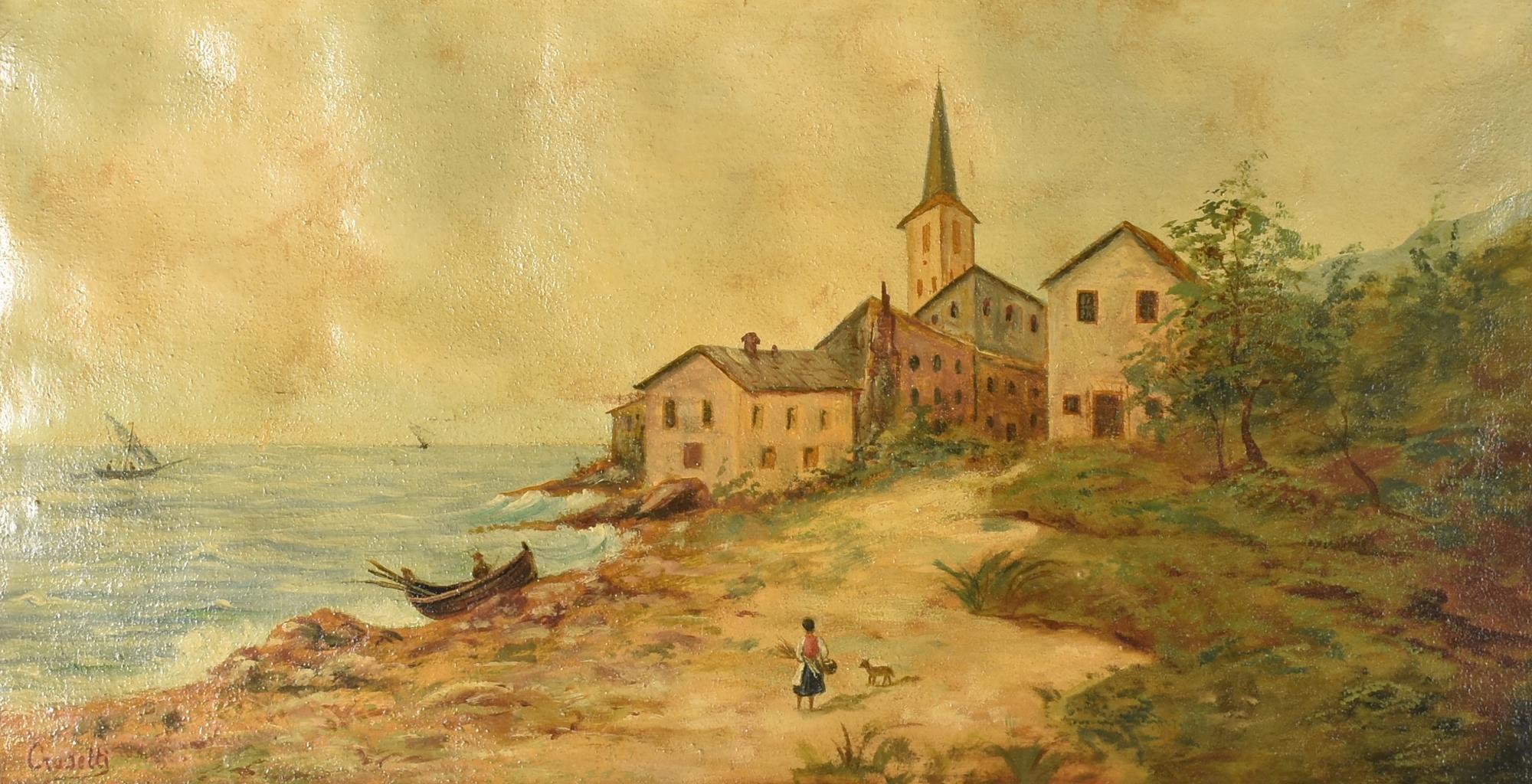 Pietro Crosetti PAESAGGIO MARINO olio su tela, cm 32x61 firma sul retro:...
