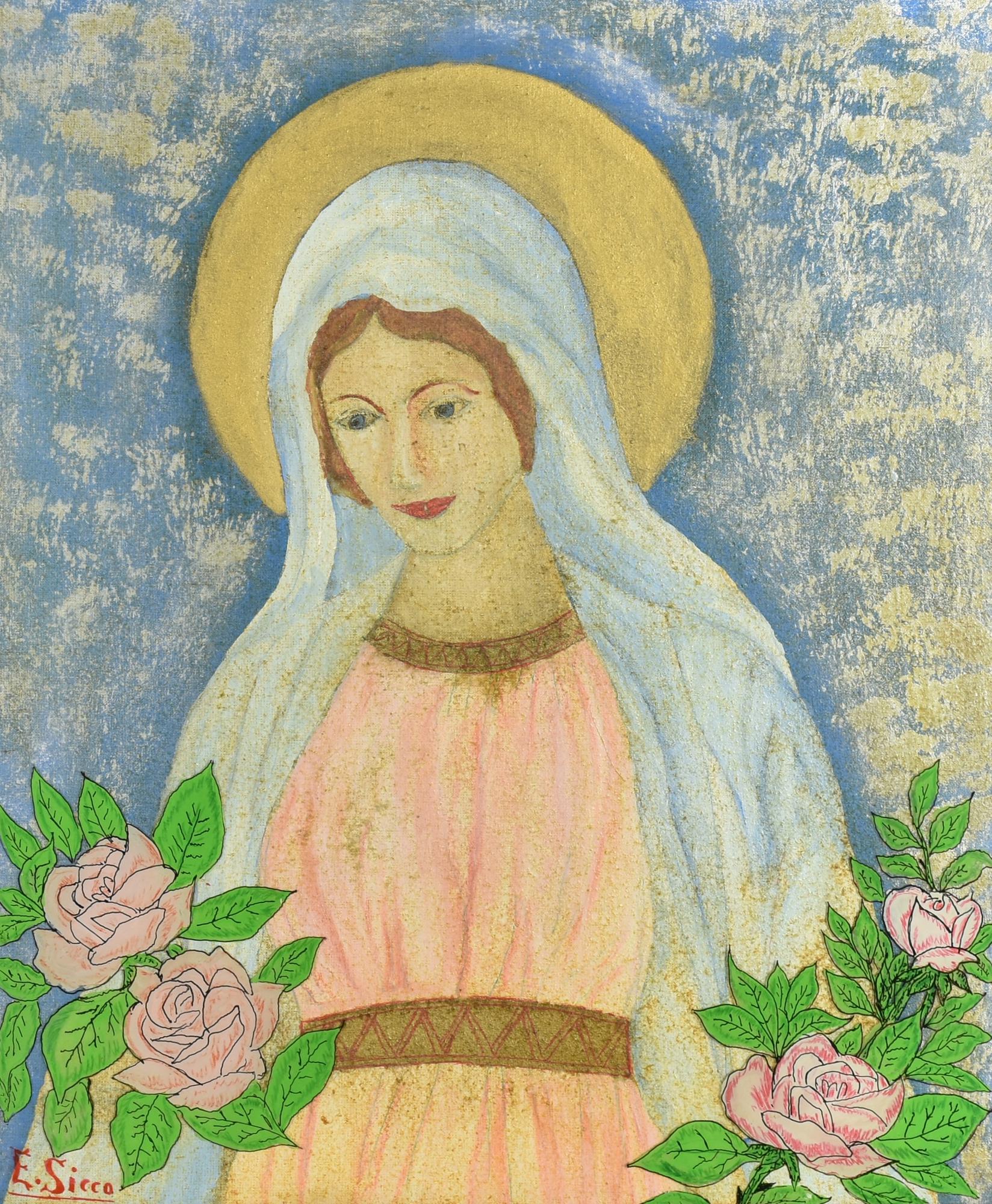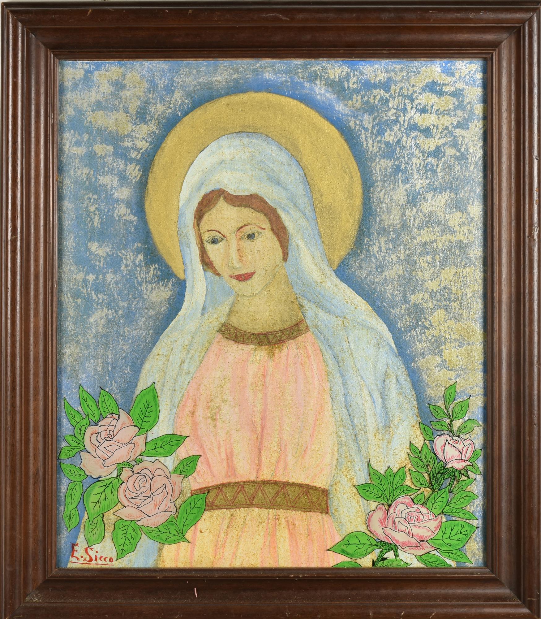 E. Sicco BEATA VERGINE tecnica mista su cartone telato, 47x40 cm firma