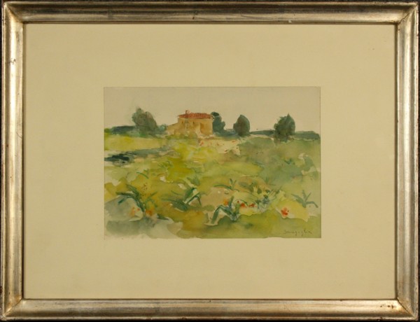 Firmato, datato. SENIGAGLIA GIUSEPPE - Nato a Burano (Venezia) nel 1942. Tempera su cartoncino raff. ''PAESAGGIO''. Firmato in basso a destra. In cornice. Mis. Lung. cm. 23 Alt. cm. 18 ca.