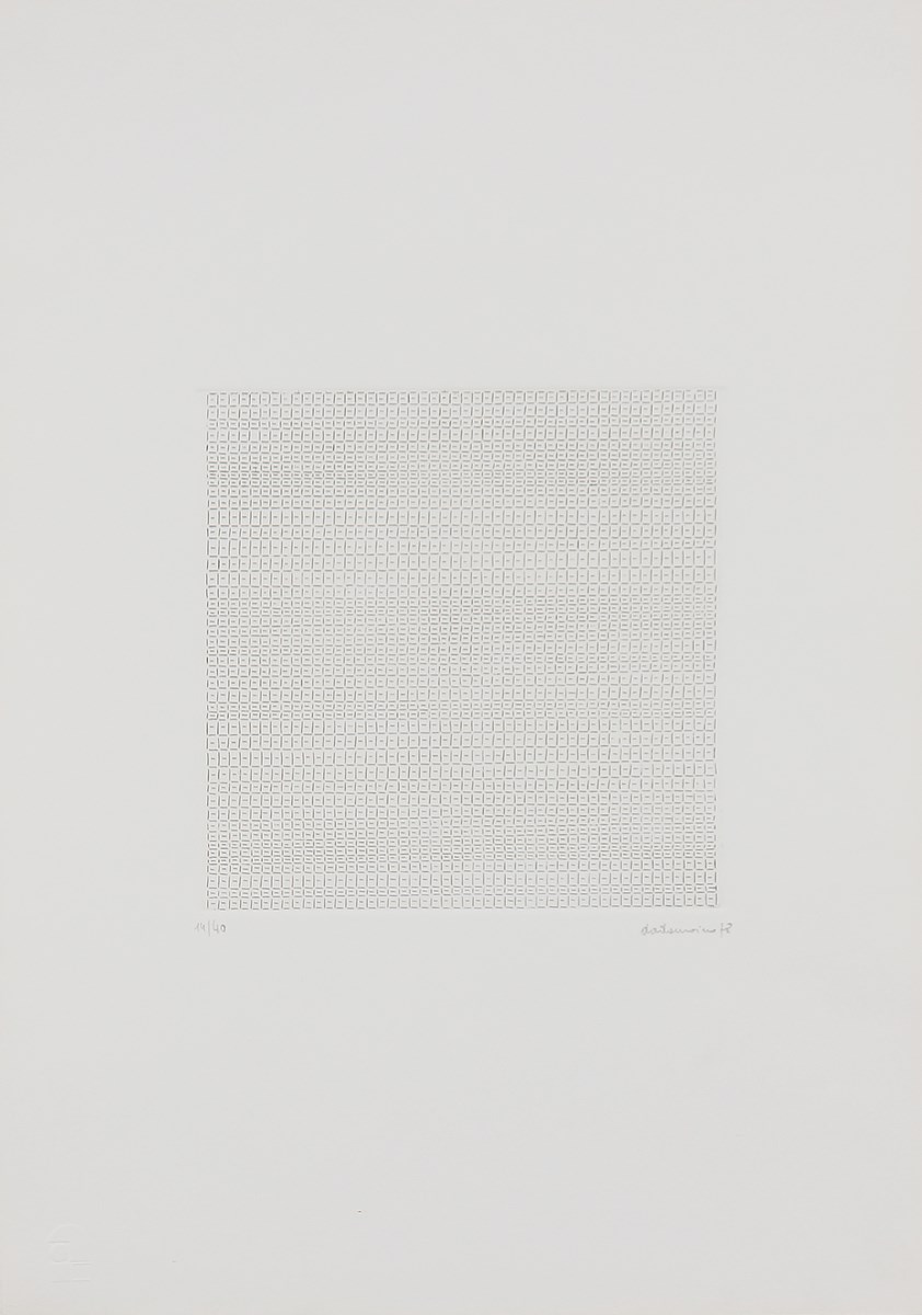 AUTORI VARI Cartella completa contenente n. 5 serigrafie. 1978. Serigrafia. Cm 35,00 x 50,00. Serigrafie rispettivamente degli artisti: Gianfranco Pardi, Gianni Colombo, Walter Valentini, Paolo Schiavocampo, Dadamaino. Misure lastra: 20x20 cm. Tir. 14/40 e firma in basso a matita. Timbro a secco in basso.