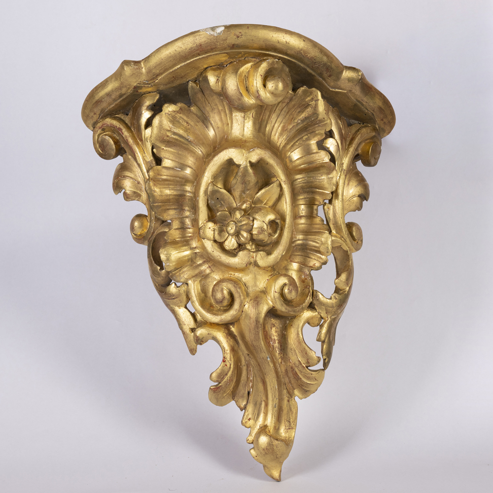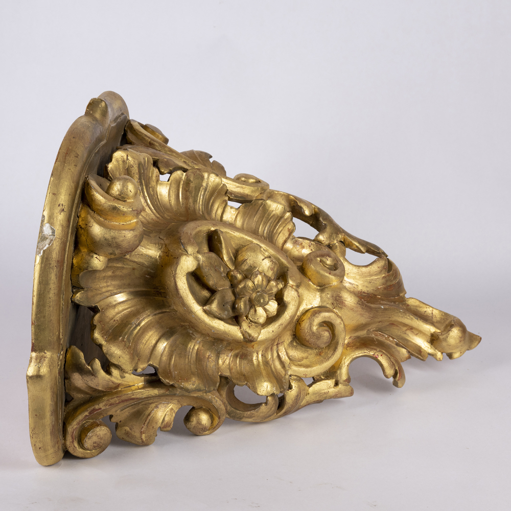 Consolle angolare in legno intagliato e dorato