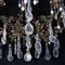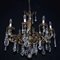 Lampadario in metallo dorato a otto luci con pendenti in cristallo