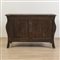 Cassettone lastronato in noce con fronte e fianchi mossi, piano in marmo e finiture in bronzo dorato